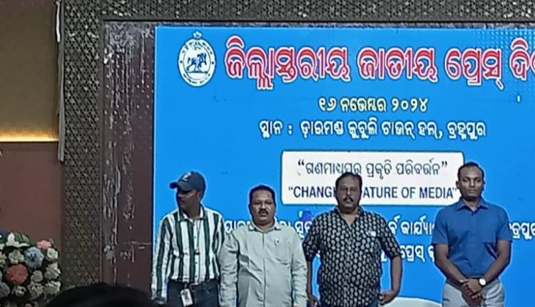 ବ୍ରହ୍ମପୁର, (କେ. ସତ୍ୟନାରାୟଣ ରେଡ୍ଡୀ) : ଜାତୀୟ ପ୍ରେସ ଦିବସ ଅବସରରେ ବ୍ରହ୍ମପୁର ସହରର ଡାଇମଣ୍ଡ ଜୁବୁଲି ଟାଉନ୍ ହଲ୍ ପରିସରରେ ଗଞ୍ଜାମ ଜିଲ୍ଲାସ୍ତରୀୟ ପ୍ରେସ୍ ଦିବସ ସମାରୋହ, ଆଲୋଚନା ଚକ୍ର ଓ ବନ୍ଧୁମିଳନ କାର୍ଯ୍ୟକ୍ରମ ଅନୁଷ୍ଠିତ ହୋଇଯାଇଛି । ଗଞ୍ଜାମ ଜିଲ୍ଲା ସୂଚନା ଓ ଲୋକସମ୍ପର୍କ ବିଭାଗ (ଛତ୍ରପୁର) ଆନୁକୂଲ୍ୟରେ ଏବଂ ବ୍ରହ୍ମପୁର ପ୍ରେସ୍ କ୍ଲବ ସହଯୋଗରେ ଆୟୋଜିତ ଏହି ଉତ୍ସବର ପ୍ରାରମ୍ଭରେ ପ୍ରଦୀପ ପ୍ରଜଳ୍ଳନ ପୂର୍ବକ ଅତିଥିମାନଙ୍କ ଦ୍ଵାରା ଏହାକୁ ଆନୁଷ୍ଠାନିକ ଭାବେ ଉଦ୍ଘାଟନ ହୋଇଥିଲା । ବ୍ରହ୍ମପୁର ନୀଳକଣ୍ଠନଗରର ସରସ୍ୱତୀ ଶିଶୁ ବିଦ୍ୟା ମନ୍ଦିର ଅନୁଷ୍ଠାନର ବିଦ୍ୟାର୍ଥୀଙ୍କ ଦ୍ୱାରା ବନ୍ଦେ ଉତ୍କଳ ଜନନୀ ସଙ୍ଗୀତ ପରିବେଷଣ କରାଯାଇଥିଲା । ଆୟୋଜିତ କାର୍ଯ୍ୟକ୍ରମରେ ମୁଖ୍ୟଅତିଥି ଭାବରେ ବ୍ରହ୍ମପୁର ଆରକ୍ଷୀ ଅଧିକ୍ଷକ ଡା. ଶର୍ବଣା ବିବେକ ଏମ୍. ଯୋଗଦେଇ ସମୟ ସହିତ ତାଳ ଦେଇ ଗଣମାଧ୍ୟମ ପ୍ରକୃତି ପରିବର୍ତ୍ତନ ହୋଇ ଚାଲିଛି, ତାହାରି ଉପରେ ଗୁରୁତ୍ୱରୋପ କରିଥିଲେ । ଦେଶରେ ଗଣମାଧ୍ୟମ ମଧ୍ୟ ସାମ୍ୱାଦିକଙ୍କ ରୁଚି ଅନୁଯାୟୀ ଖବର ପରିବେଷଣର ବିଭିନ୍ନ ବିଭକ୍ତିକରଣ ଉପରେ ଆଲୋକପାତ କରିବା ସହ ସ୍ୱାଧିନତା ପୂର୍ବରୁ ଗଣମାଧ୍ୟମକୁ କିଭଳି କଣ୍ଠରୋଧ କରିବାକୁ ପ୍ରୟାସ ହୋଇଥିଲା ଏବଂ ସେହି ସମୟର କାର୍ଯ୍ୟ ଉପରେ ବ୍ୟାଖ୍ୟା କରିବା ସହ ସାମାଜିକ ଗଣମାଧ୍ୟମରେ ମିଥ୍ୟା ଖବର ପ୍ରସାରିତ ହେବା ଏବଂ ତାହାର ପ୍ରଭାବ ଉପରେ ତଥ୍ୟଭିତ୍ତିକ ଉପସ୍ଥାପନା କରିଥିଲେ । ଏଥିସହ ପରିବର୍ତ୍ତନଶୀଳ ଗଣମାଧ୍ୟମରେ ମିଥ୍ୟା ଖବରର ସ୍ଥାନ ନାହିଁ ବୋଲି କହିଥିଲେ । ଏଥିସହ ପ୍ରତିକୂଳ ବ୍ୟବସ୍ଥା ସତ୍ତ୍ୱେ ସାମ୍ୱାଦିକ କାର୍ଯ୍ୟ ଏବଂ ସାମ୍ୱାଦିକର ମୌଳିକ ନୀତିକୁ ଆଧାର କରି ଜନସାଧାରଣଙ୍କ ନିକଟରେ ଯେପରି ସତ୍ୟ, ବସ୍ତୁନିଷ୍ଠ, ସଠିକ୍ ଓ ନିରପେକ୍ଷ ସୂଚନା ପହଞ୍ଚାଇବାକୁ ଆହ୍ୱାନ କରିଥିଲେ । କାର୍ଯ୍ୟକ୍ରମରେ ସମ୍ମାନିତ ଅତିଥି ଭାବେ ବ୍ରହ୍ମପୁର ଉପଜିଲ୍ଲାପାଳ ଦୀନା ଦସ୍ତାଗୀର ଯୋଗଦେଇ ସମୟ ପରିବର୍ତ୍ତନ ସହ ଗଣମାଧ୍ୟମର ମଧ୍ୟ ପରିବର୍ତ୍ତନ ଘଟିବା ଏବଂ ଏପରି ଜାତୀୟ ପ୍ରେସ୍ ଦିବସ ପାଳନର ଅନେକ ଗୁରୁତ୍ୱ ବହନ କରୁଥିବା ନିଜର ବକ୍ତବ୍ୟରେ ଜଣାଇଥିଲେ । ଦକ୍ଷିଣାଞ୍ଚଳ ଭାରପ୍ରାପ୍ତ ଉପ-ନିର୍ଦ୍ଦେଶକ ତଥା ଗଞ୍ଜାମ ଜିଲ୍ଲା ସୂଚନା ଓ ଲୋକସମ୍ପର୍କ ଅଧିକାରୀ ରବି ନାରାୟଣ ବେହେରା କାର୍ଯ୍ୟକ୍ରମରେ ସ୍ୱାଗତ ଭାଷଣ ପ୍ରଦାନ କରିବା ସହ ଏହି ଦିବସର ତାତ୍ପର୍ଯ୍ୟ ସଂପର୍କରେ ଆଲୋକପାତ କରିଥିଲେ । ସେ ତାଙ୍କ ବକ୍ତବ୍ୟରେ କହିଥିଲେ ଯେ’ ସ୍ୱାଧିନ ଓ ମୁକ୍ତ ଗଣମାଧ୍ୟମ ହେଉଛି ଶକ୍ତିଶାଳୀ ଗଣତନ୍ତ୍ରର ଚାରୋଟି ସ୍ତମ୍ଭ ମଧ୍ୟରୁ ଅନ୍ୟତମ । ଗଣମାଧ୍ୟମ ଚତୁର୍ଥସ୍ତମ୍ଭ ସତର୍କ ପ୍ରହରୀ ଭାବରେ କାର୍ଯ୍ୟ କରୁଛି । ବ୍ରହ୍ମପୁର ପ୍ରେସ୍ କ୍ଲବର ସଭାପତି ଅଶୋକ କୁମାର ବ୍ରହ୍ମା କାର୍ଯ୍ୟକ୍ରମକୁ ପରିଚାଳନା କରିବା ସହିତ ନିଜ ବକ୍ତବ୍ୟରେ ସମାଜକୁ ଦିଗ୍ଦର୍ଶନ ଦେବା ସମସ୍ତ ଗଣମାଧ୍ୟମର ଲକ୍ଷ୍ୟ ହେବା ଉଚିତ । ଯୁଗ ସହିତ ତାଳ ଦେଇ ଗଣମାଧ୍ୟମ ପରିବର୍ତ୍ତନ ହେଉଛି ଏଣୁ ଜନସାଧାରଣଙ୍କ ଚିନ୍ତାଧାରକୁ ପାଥେୟ କରି ଗଣମାଧ୍ୟମର ମଧ୍ୟ ପରିବର୍ତ୍ତନ ଘଟୁଥିବା କହିଥିଲେ । କାର୍ଯ୍ୟକ୍ରମରେ ଅନ୍ୟମାନଙ୍କ ମଧ୍ୟରେ ବରିଷ୍ଠ ସାମ୍ୱାଦିକ ଶକ୍ତିଧର ରାଜଗୁରୁ ନିଜର ଅଭିଭାଷଣରେ ନିର୍ଭକ ଓ 