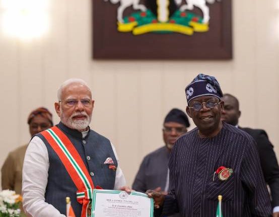 ନୂଆଦିଲ୍ଲୀ, (ପିଆଇବି) : ଷ୍ଟେଟ୍ ହାଉସରେ ଆୟୋଜିତ ଏକ ସମାରୋହରେ ନାଇଜେରିଆ ଫେଡେରାଲ ରିପବ୍ଲିକ୍ର ରାଷ୍ଟ୍ରପତି ମହାମହିମ ବୋଲା ଅହମ୍ମଦ ଟିନୁବୁ ଭାରତ-ନାଇଜେରିଆ ସମ୍ପର୍କକୁ ପ୍ରୋତ୍ସାହିତ କରିବାରେ ଉଲ୍ଲେଖନୀୟ ଅବଦାନ ପାଇଁ ପ୍ରଧାନମନ୍ତ୍ରୀ ନରେନ୍ଦ୍ର ମୋଦୀଙ୍କୁ ‘ଗ୍ରାଣ୍ଡ କମାଣ୍ଡର ଅଫ୍ ଦି ଅର୍ଡର ଅଫ୍ ନାଇଜର’ ଜାତୀୟ ପୁରସ୍କାର ପ୍ରଦାନ କରିଥିଲେ । ପୁରସ୍କାର ପ୍ରଶଂସାପତ୍ରରେ ଉଲ୍ଲେଖ କରାଯାଇଛି ଯେ ପ୍ରଧାନମନ୍ତ୍ରୀଙ୍କ ଦୂରଦର୍ଶୀ ନେତୃତ୍ୱରେ ଭାରତ ଏକ ବିଶ୍ୱ ଶକ୍ତି ଭାବରେ ଅବସ୍ଥାପିତ ହୋଇଛି ଏବଂ ତାଙ୍କ ପରିବର୍ତ୍ତନଶୀଳ ଶାସନ ସମସ୍ତଙ୍କ ପାଇଁ ଏକତା, ଶାନ୍ତି ଏବଂ ଅଂଶୀଦାର ସମୃଦ୍ଧିକୁ ପ୍ରୋତ୍ସାହିତ କରିଛି । ଏହି ପୁରସ୍କାର ଗ୍ରହଣ କରିବା ଅବସରରେ ପ୍ରଧାନମନ୍ତ୍ରୀ ଏହି ସମ୍ମାନକୁ ଭାରତବାସୀ ଏବଂ ଭାରତ ଓ ନାଇଜେରିଆ ମଧ୍ୟରେ ଥିବା ଦୀର୍ଘକାଳୀନ ଐତିହାସିକ ବନ୍ଧୁତାକୁ ଉତ୍ସର୍ଗ କରିଥିଲେ । ସେ ଆହୁରି ମଧ୍ୟ କହିଛନ୍ତି ଯେ ଏହି ସ୍ୱୀକୃତି ଦୁଇ ଦେଶ ମଧ୍ୟରେ ରଣନୈତିକ ଭାଗିଦାରୀ ଏବଂ ଗ୍ଲୋବାଲ୍ ସାଉଥର ଆକାଂକ୍ଷା ପ୍ରତି ସେମାନଙ୍କର ଅଂଶୀଦାର ପ୍ରତିବଦ୍ଧତାକୁ ଦର୍ଶାଏ । ପ୍ରଧାନମନ୍ତ୍ରୀ ନରେନ୍ଦ୍ର ମୋଦୀ ହେଉଛନ୍ତି ପ୍ରଥମ ବିଦେଶୀ ନେତା ଯିଏ କି ୧୯୬୯ ପରେ ଏହି ପୁରସ୍କାରରେ ସମ୍ମାନିତ ହୋଇଛନ୍ତି ।