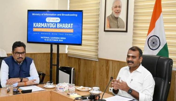 କର୍ମଯୋଗୀ ସପ୍ତାହ – ଜାତୀୟ ଶିକ୍ଷା ସପ୍ତାହ (ଏନ୍ଏଲ୍ଡବ୍ଲ୍ୟୁ) ହେଉଛି ଭାରତର ପ୍ରଧାନମନ୍ତ୍ରୀ ଶ୍ରୀ ନରେନ୍ଦ୍ର ମୋଦୀ ଭବିଷ୍ୟତ ପାଇଁ ପ୍ରସ୍ତୁତ ସିଭିଲ ସର୍ଭିସ ଗଠନ କରିବାକୁ ଏବଂ ଏହି ସପ୍ତାହରେ ସମସ୍ତ ସ୍ତରରେ ସରକାରୀ କର୍ମଚାରୀଙ୍କ ଦକ୍ଷତାକୁ ଦୃଢ଼ କରିବା ଉପରେ ଗୁରୁତ୍ୱାରୋପ କରାଯାଇଥିଲା, ଯାହା ବିଶ୍ୱସ୍ତରୀୟ ଦୃଷ୍ଟିକୋଣ ସହିତ ଭାରତୀୟ ମୂଲ୍ୟବୋଧରେ ଗଭୀର ଭାବରେ ଗଢ଼ି ଉଠିଛି । ଏହି ଅବସରରେ ସୂଚନା ଓ ପ୍ରସାରଣ ରାଜ୍ୟ ମନ୍ତ୍ରୀ ଡକ୍ଟର ଏଲ୍. ମୁରୁଗନ୍ ୩ ମିଲିୟନ୍ରୁ ଅଧିକ କେନ୍ଦ୍ର ସରକାରୀ କର୍ମଚାରୀଙ୍କର ଦକ୍ଷତା ଏବଂ କୌଶଳ ବୃଦ୍ଧି କରିବା ତଥା ୨୨ ମିଲିୟନରୁ ଅଧିକ ରାଜ୍ୟ ସ୍ତରୀୟ ସରକାରୀ କର୍ମଚାରୀ ଏବଂ ୫ ମିଲିୟନ୍ ସହରୀ ସ୍ଥାନୀୟ ସଂସ୍ଥା (ୟୁଏଲ୍ବି) ପାଇଁ ନିରନ୍ତର ଶିକ୍ଷା ଉପଲବ୍ଧତା ସୁନିଶ୍ଚିତ କରିବାର ଆବଶ୍ୟକତା ଉପରେ ଗୁରୁତ୍ୱାରୋପ କରିଥିଲେ । ଏହି କାର୍ଯ୍ୟକ୍ରମ କିପରି ଉଭୟ ସ୍ଥାୟୀ ଏବଂ ଚୁକ୍ତିଭିତ୍ତିକ କର୍ମଚାରୀଙ୍କ ପାଇଁ ଖୋଲା ରହିଛି, ଯାହା ଜାତୀୟ ଲକ୍ଷ୍ୟ ସହିତ ସମାନ୍ତରାଳ ଭାବରେ ଆଜୀବନ ଶିକ୍ଷାକୁ ପ୍ରୋତ୍ସାହିତ କରିବ ବୋଲି ସେ ଆଲୋକପାତ କରିଥିଲେ । ଆଇଗେଟ୍ ଲ୍ୟାବ : ଶିଖିବାକୁ ବୃଦ୍ଧି କରିବା : ଡ. ଏଲ୍. ମୁରୁଗନ୍ କହିଥିଲେ ଯେ, ମନ୍ତ୍ରଣାଳୟ ସୋସିଆଲ୍ ମିଡିଆର ଉପଯୋଗ, ଚଳଚ୍ଚିତ୍ର ଜ୍ଞାନର ବିକାଶ ଏବଂ ଫୋଟୋଗ୍ରାଫି କୌଶଳ ବୃଦ୍ଧି ଉପରେ ୩ଟି ୱେବିନାର ଆୟୋଜନ କରିଛି । ଏହାଛଡା, ସମସ୍ତ କର୍ମଚାରୀମାନଙ୍କ ପାଇଁ ଆଇଗେଟ୍ କର୍ମଯୋଗୀ ପୋର୍ଟାଲରେ ଅତି କମରେ ୪ ଘଣ୍ଟାର ତାଲିମ ସମ୍ପୂର୍ଣ୍ଣ କରିବାକୁ ବାଧ୍ୟତାମୂଳକ କରାଯାଇଥିଲା, ଯେଉଁଥିରେ ଅଫିସ ପ୍ରକ୍ରିୟା, ଲିଙ୍ଗ ସମ୍ବେଦନଶୀଳତା ଏବଂ ନେତୃତ୍ୱ ଭଳି ପ୍ରମୁଖ କ୍ଷେତ୍ରକୁ ଅନ୍ତର୍ଭୁକ୍ତ କରାଯାଇଥିଲା । ଏକ ଆଇଗଟ୍ ଲ୍ୟାବ ପ୍ରତିଷ୍ଠା ସମେତ ମନ୍ତ୍ରଣାଳୟର ଅଭିନବ ଉପାୟକୁ ସେ ପ୍ରଶଂସା କରିଥିଲେ, ଯାହାକୁ ସେ ନିରନ୍ତର ଶିକ୍ଷଣ ପାଇଁ ଏକ ପ୍ରଶଂସନୀୟ ପଦକ୍ଷେପ ବୋଲି ବର୍ଣ୍ଣନା କହିଛନ୍ତି । ଡ. ଏଲ୍. ମୁରୁଗନ ଶ୍ରେଷ୍ଠ ପ୍ରଦର୍ଶନକାରୀଙ୍କୁ ସମ୍ମାନିତ କରିଥିଲେ ।