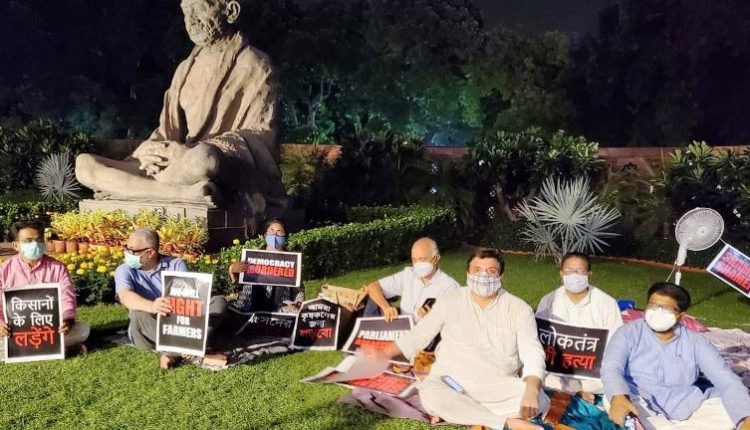 ନୂଆଦିଲ୍ଲୀ : ଚଳିତ ମୌସୁମୀ ଅଧିବୋଶନରେ ୮ ଜଣ ସାଂସଦଙ୍କୁ ସଂସଦରୁ ନିଲମ୍ବିତ କରାଯାଇଛି । ଏହାପରେ ନିଲମ୍ବିତ ସାଂସଦମାନେ ସଂସଦର ଗାନ୍ଧୀ ପ୍ରତିମା ସାମ୍ନାରେ ଧାରଣାରେ ବସିଛନ୍ତି । ନିଲମ୍ବିତ ସାଂସଦଙ୍କ କହିବା ଅନୁସାରେ ସେମାନେ ସାରା ରାତି ଧାରଣାରେ ବସିବେ ଏବଂ ସେତେବେଳ ପର୍ଯ୍ୟନ୍ତ ଧାରଣା ଦେବେ ଯେତେବେଳ ପର୍ଯ୍ୟନ୍ତ ତାଙ୍କ ନିଲମ୍ବନ ପ୍ରତ୍ୟାହାର ନ ହୋଇଛି । ତେବେ ଧାରଣାରେ ବସିଥିବା ସାଂସଦମାନଙ୍କ ସମର୍ଥନ ଜଣାଇ କଂଗ୍ରେସ ସାଂସଦ ଗୁଲାମନବୀ ଆଜାଦ ବି ପହଂଚିଛନ୍ତି ଏବଂ ସେ କହିଛନ୍ତି ଯେ, ସଂପୃକ୍ତ ବିଲ୍ କୃଷକଙ୍କୁ ବର୍ବାଦ୍ କରିଦେବା ଭଳି ବିଲ୍ । ସଂପୂର୍ଣ୍ଣ କୃଷକ ବିରୋଧୀ । ସରକାରଙ୍କ ଦ୍ୱାରା ଜବର୍ଦସ୍ତି ଏହି ବିଲ୍ ପାସ୍ କରାଯାଇଛି । ଗୁଲାମନବୀ ଆଜାଦ ସ୍ପଷ୍ଟ କରିବାକୁ ଯାଇ କହିଛନ୍ତି ଯେ, ରାଜ୍ୟସଭାରେ ହଙ୍ଗାମା କାଳରେ ସାଂସଦମାନେ କାହାକୁ ବି ହାତ ଲଗାଇ ନାହାନ୍ତି । ନା ଉପସଭାପତିଙ୍କୁ ନା ମାର୍ଶଲ, କାହାକୁ ବି ହାତ ଲଗା ଯାଇନାହିଁ ।