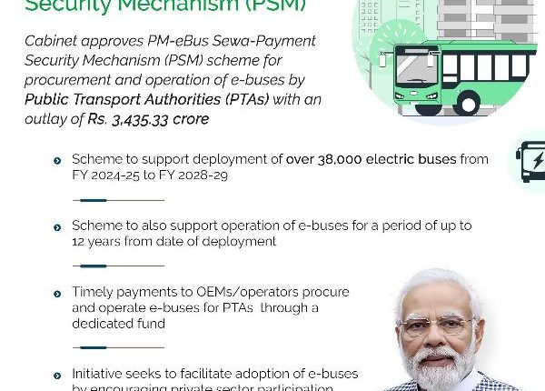 ସାର୍ବଜନୀନ ପରିବହନ କର୍ତ୍ତୃପକ୍ଷଙ୍କ ଦ୍ୱାରା ଇ-ବସ୍ କ୍ରୟ ଏବଂ ପରିଚାଳନା ପାଇଁ ପିଏମ-ଇବସ୍ ସେବା-ପେମେଣ୍ଟ ସିକ୍ୟୁରିଟି ମେକାନିଜିମ୍ (ପିଏସ୍ଏମ୍) ଯୋଜନାକୁ କ୍ୟାବିନେଟ୍ ମଞ୍ଜୁରୀ