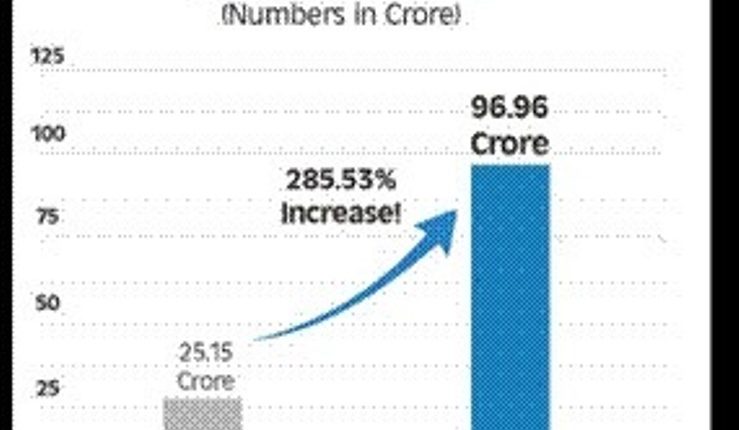 ନୂଆଦିଲ୍ଲୀ, (ପିଆଇବି) : ଗତ ୧୧ ବର୍ଷ ମଧ୍ୟରେ, ଭାରତ ଏକ ଡିଜିଟାଲ୍ ସଶକ୍ତ ସମାଜ ଏବଂ ଜ୍ଞାନ ଆଧାରିତ ଅର୍ଥବ୍ୟବସ୍ଥା ହେବା ଦିଗରେ ଏହାର ଯାତ୍ରାରେ ଉଲ୍ଲେଖନୀୟ ଅଗ୍ରଗତି କରିଛି । ଦୂରଦୂରାନ୍ତ ଗ୍ରାମାଞ୍ଚଳରେ ଇଣ୍ଟରନେଟ୍ ସୁବିଧା ବିସ୍ତାର କରିବା ଠାରୁ ଡିଜିଟାଲ୍ ପ୍ଲାଟଫର୍ମ ମାଧ୍ୟମରେ ସାର୍ବଜନୀନ ସେବା ପ୍ରଦାନରେ ବିପ୍ଳବ ଆଣିବା ପର୍ଯ୍ୟନ୍ତ, ଦେଶ ପୂର୍ବ ପରି ସହରାଞ୍ଚଳ-ଗ୍ରାମାଞ୍ଚଳ ବିଭାଜନକୁ ଦୂର କରିଛି । ୨୦୨୨-୨୩ ମସିହାରେ ଜାତୀୟ ଆୟରେ ୧୧.୭୪% ଯୋଗଦାନ ଦେଇଥିବା ଡିଜିଟାଲ୍ ଅର୍ଥବ୍ୟବସ୍ଥା ୨୦୨୪-୨୫ ସୁଦ୍ଧା ୧୩.୪୨%କୁ ବୃଦ୍ଧି ପାଇବାର ଆକଳନ କରାଯାଇଛି, ଯାହା ଆର୍ଟିଫିସିଆଲ ଇଣ୍ଟେଲିଜେନ୍ସ, କ୍ଲାଉଡ୍ କମ୍ପ୍ୟୁଟିଂ ଏବଂ ଡିଜିଟାଲ୍ ଭିତ୍ତିଭୂମି କ୍ଷେତ୍ରରେ ଆସିଥିବା ଅଗ୍ରଗତି ଦ୍ୱାରା ପରିଚାଳିତ । ଦୃଢ଼ ଡିଜିଟାଲ୍ ଭିତ୍ତିଭୂମି ଏକ ଆଧୁନିକ ଅର୍ଥବ୍ୟବସ୍ଥାର ଆଧାର। ଗତ ୧୧ ବର୍ଷ ମଧ୍ୟରେ, ଭାରତ ଗ୍ରାମାଞ୍ଚଳରେ ମୋବାଇଲ୍ ନେଟୱାର୍କକୁ ଉଲ୍ଲେଖନୀୟ ଭାବରେ ବିସ୍ତାର କରିଛି ଏବଂ ଇଣ୍ଟରନେଟ୍ ସଂଯୋଗରେସୁଧାର ଆଣିଛି । ଭାରତରେ ମୋଟ ଟେଲିଫୋନ୍ ସଂଯୋଗ ମାର୍ଚ୍ଚ ୨୦୧୪ରେ ୯୩.୩ କୋଟିରୁ ବୃଦ୍ଧି ପାଇ ଏପ୍ରିଲ ୨୦୨୫ରେ ୧୨୦+ କୋଟିରେ ପହଞ୍ଚିଛି।ଭାରତରେ ସାମଗ୍ରିକ ଟେଲି-ଘନତା ଯାହା ମାର୍ଚ୍ଚ ୨୦୧୪ରେ୭୫.୨୩% ଥିଲା, ତାହା ଅକ୍ଟୋବର ୨୦୨୪ରେ୮୪.୪୯%କୁ ବୃଦ୍ଧି ପାଇଛି । ସହରାଞ୍ଚଳ ଟେଲିଫୋନ୍ ସଂଯୋଗ ମାର୍ଚ୍ଚ ୨୦୧୪ରେ୫୫୫.୨୩ନିୟୁତ ତୁଳନାରେ ଅକ୍ଟୋବର ୨୦୨୪ରେ୬୬୧.୩୬ନିୟୁତକୁ ବୃଦ୍ଧି ପାଇଛି, ଅନ୍ୟପକ୍ଷରେ ଗ୍ରାମାଞ୍ଚଳ ଟେଲିଫୋନ୍ ସଂଯୋଗ ମାର୍ଚ୍ଚ ୨୦୧୪ରେ ୩୭୭.୭୮ନିୟୁତରୁ ବୃଦ୍ଧି ପାଇ ଅକ୍ଟୋବର ୨୦୨୪ରେ ୫୨୭.୩୪ନିୟୁତକୁ ବୃଦ୍ଧି ପାଇଛି । ଇଣ୍ଟରନେଟ୍ ସଂଯୋଗ ମାର୍ଚ୍ଚ ୨୦୧୪ରେ ୨୫.୧୫ କୋଟିରୁ ବୃଦ୍ଧି ପାଇ ଜୁନ୍ ୨୦୨୪ରେ ୯୬.୯୬ କୋଟିକୁ ବୃଦ୍ଧି ପାଇଛି, ଯାହା ୨୮୫.୫୩% ବୃଦ୍ଧି ପାଇଛି ।