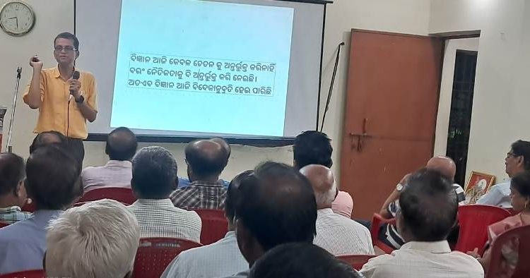 ରାଉରକେଲା, (ସସ୍ମିତା ପ୍ରଧାନ) : ଛେଣ୍ଡ ସ୍ଥିତ ମଧୁସୂଦନ ପାଠାଗାର ପରିସରରେ ବିଜ୍ଞାନ ଓ ଆଧ୍ୟାତ୍ମିକତା ଉପରେ ଏକ କର୍ମଶାଳା ଅନୁଷ୍ଠିତ ହୋଇଯାଇଛି । ପାଠାଗାରର ସଭାପତି ହରିହର ରାଉତରାୟ ପ୍ରଦୀପ ପ୍ରଜ୍ୱଳନ କରି କାର୍ଯ୍ୟକ୍ରମକୁ ଉଦଘାଟନ କରିଥିବା ବେଳେ ମୁଖ୍ୟ ଆଲୋଚକ ଇଂ ସୁବାସ ମହାପାତ୍ର ପ୍ରୋଜେକ୍ଟର ମାଧ୍ୟମରେ ବିଜ୍ଞାନ ଓ ଆଧ୍ୟାତ୍ମିକତା କିପରି ପରସ୍ପରର ପରିପୂରକ ତାହା ସୁନ୍ଦର ଭାବରେ ବୁଝାଇ ଥିଲେ । ମନୁଷ୍ୟ ମନରେ ଶାନ୍ତି ବିରାଜମାନ କରିବାକୁହେଲେ ଯୋଗ ଓ ପ୍ରାଣାୟାମ ମାଧ୍ୟମରେ ଶରୀରରେ ଉର୍ଜା ସୃଷ୍ଟି କରି ତାକୁ ସକାରାତ୍ମକ ଭାବରେ ନିସ୍ଵାର୍ଥପର ହୋଇ ସୁକ୍ଷ୍ମ ଦୃଷ୍ଟିରେ ବିନିଯୋଗ କଲେ ତାହା ସମାଜର କଲ୍ୟାଣରେ ଲାଗି ପାରିବ । ଆମେ ବିଜ୍ଞାନକୁ ସାଥିରେ ନେଇ ଆଧ୍ୟାତ୍ମିକ ଦିଗକୁ ବାଛି ନେବାକୁ ପଡିବ । ସେଥିରେ ହିଁ ହେବ ବିଶ୍ୱର ମଙ୍ଗଳ ବୋଲି ଶ୍ରୀ ମହାପାତ୍ର ତାଙ୍କର ବକ୍ତବ୍ୟରେ ପ୍ରକାଶ କରିଥଲେ । ଏହି କାର୍ଯ୍ୟକ୍ରମକୁ ପାଠାଗାରର ସମ୍ପାଦକ ବିଜୟ କୁମାର ବରାଳ ସଂଯୋଜନା କରିଥିବାବେଳେ କାର୍ଯ୍ୟକାରୀ ସଭାପତି ବ୍ରଜ କିଶୋର ପାଣୀ ଧନ୍ୟବାଦ ଦେଇଥିଲେ । ଏହି ଆଲୋଚନା ଚକ୍ରରେ ଛେଣ୍ଡର ବହୁ ବୁଦ୍ଧିଜୀବୀ ଯଥା ପ୍ରଫେସର ଶଙ୍କର ପ୍ରସାଦ ତ୍ରିପାଠୀ, ଇଂ ଶକ୍ତି ପ୍ରସାଦ ସାମନ୍ତରାୟ, ଇଂ ରବି ସିଂ, ଇଂ ରମେଶ ସିଂ, ଇଂ ହରିହର ନାୟକ, ଗୋପବନ୍ଧୁ ପାଠାଗାରର ସମ୍ପାଦକ ହରିହର ଶତପଥି, ଧାମରା ସାହିତ୍ୟ ସଂସଦର କବି ସୁଶାନ୍ତ ନାୟକ, ଡ଼କ୍ଟର ପ୍ରଭାକର ନାୟକ, ଛେଣ୍ଡ ନାଗରିକ ମଞ୍ଚର ଆବାହକ ତଥା ରାଜନେତା ଜୟନ୍ତ କୁମାର ମିଶ୍ର, ଇଂ ଗୁରୁ ପଟ୍ଟନାୟକ, ପାଠାଗାରର ସଂଗଠନ ସମ୍ପାଦକ ସୂର୍ଯ୍ୟନାରାୟଣ ପଣ୍ଡା, ଆଇନଜୀବୀ ପୁର୍ଣ୍ଣଚନ୍ଦ୍ର ପ୍ରଧାନ ଓ ପ୍ରକାଶ ମହାନ୍ତି ପ୍ରମୁଖ ଯୋଗ ଦେଇଥିଲେ ।