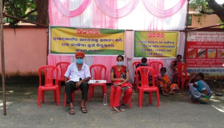 ପ୍ରକାଶ ଥାଉକି ଝାଙ୍କରପଡା ପି.ଏଚ.ଡି.ଗ୍ରାମୀଣ ଅଫିସ ସମ୍ମୁଖରେ ଥିବା ସରକାରୀ ଜମିରେ ସୁରଜିତ ସିଂ ମାଖିଜା ୬ଟି ଦୋକାନ ଗୃହ ନିର୍ମାଣ କରି ଭଡା ସୂତ୍ରେ ଲଗାଇଥିଲେ । ଏହି ବେଦଖଲ ସରକାରୀ ଜମିରେ ଥିବା ୬ଟି ଦୋକାନ ଗୃହକୁ ଗତ ଅଗଷ୍ଟ ୧୪ ତାରୀଖ ଦିନ ଟିଟିଲାଗଡ ଉପଜିଲ୍ଲାପାଳ ତଥା କଂଟାବାଂଜି ଏନ.ଏ.ସି. ପ୍ରଶାସକ ସୋମେଶ ଉପାଧ୍ୟାୟ, ତହସିଲଦାର କଂଟାବାଂଜି ଅଶୋକ ମାଝି, ଏନ.ଏ.ସି. ନିର୍ବାହୀ ଅଧିକାରୀ ବିଷ୍ଣୁପ୍ରିୟା ମିଶ୍ର, କଂଟାବାଂଜି ପୋଲିସ ଉପଖଣ୍ଡ ଅଧିକାରୀ ସରୋଜ କୁମାର ମହାପାତ୍ର, ଥାନା ଆଇ.ଆଇ.ସି. ସତ୍ୟଜିତ କାଣ୍ଡେଲକର ସହ ଏକ ପ୍ଲାଟୁନ ଫୋର୍ସର ଉପସ୍ଥିତିରେ ଝାଙ୍କରପଡା ନିକଟସ୍ଥ ପି.ଡବ୍ଲୁ.ଡି.ରାସ୍ତା ସ୍ଥିତ ସରକାରୀ ଜମିକୁ ଉଛେଦ କରିବା ସହିତ ନିର୍ମିତ ୬ଟି ବ୍ୟବସାୟୀକ ଷ୍ଟଲକୁ ଊଛେଦ କରିଥିଲେ । ଜବର ଦଖଲ କରିଥିବା ସୁରଜିତ ସିଂ ମାଖିଜା ଉକ୍ତ ସରକାରୀ ଜମିରେ ୬ଟି ଷ୍ଟଲ ନିର୍ମାଣ କରିଥିବାରୁ ପ୍ରଶାସନିକ ସ୍ତରରେ ଦୀର୍ଘ ଦିନରୁ ଅଦାଲତରେ ମାମଲା ଚାଲିଥିଲା ଏବଂ ଉକ୍ତ ମାମଲାରେ ଜବରଦଖଲକାରୀ ଉଚିତ କାଗଜାଦ ଦେଖାଇ ନ ପାରିବାରୁ ଉଛେଦ ହୋଇଥିବା ପ୍ରଶାସନ ଦର୍ଶାଇଥିଲା । ଏହି ଊଛେଦକୁ ଜବରଦଖଲକାରୀ ସୁରଜିତ ସିଂ ମାଖିଜା ଓ ତାଙ୍କ ଝିଅ ଦିବ୍ୟାଙ୍ଗ ରୂପାଲି କୌର ଅନୈତିକ ଦର୍ଶାଇ ମଂଗଲବାର ଦିନଠାରୁ ସ୍ଥାନୀୟ ତହସିଲ କାର୍ଯ୍ୟାଳୟରେ ଆମରଣ ଅନଶନରେ ବସିଥିଲେ, ଯାହା ଆଜି ୫ ଦିନରେ ପହଂଚିଛି । ପାଂଚ ଦିନ ଧରି ତହସିଲ ଅଫିସରେ ବାପା ଓ ଝିଅ ଅନଶନରେ ବସିବା ମଧ୍ୟରେ କୌଣସି ପ୍ରଶାସନିକ ନ୍ୟାୟ ନ ମିଳିବାରୁ ଆସନ୍ତା ଦିନରେ ଜିଲ୍ଲାପାଳ ବଲାଙ୍ଗିରଙ୍କ କାର୍ଯ୍ୟାଳୟ ସମ୍ମୁଖରେ ଅନଶନରେ ବସିବା ପାଇଁ ବାଧ୍ୟ ହେବୁ ବୋଲି ଗଣମାଧ୍ୟମକୁ ସେମାନେ କହିଛନ୍ତି । ତହସିଲ ଅଫିସ ସମ୍ମୁଖରେ ୫ ଦିନ ଧରି ବସିଥିବା ଅନଶନ ଉପରେ ତହସିଲଦାର କଂଟାବାଂଜି ଅଶୋକ କୁମାର ମାଝି କହନ୍ତି ଉଚ୍ଚ କତୃପକ୍ଷଙ୍କୁ ଆନ୍ଦୋଳନ ବସିବା ଦିନଠାରୁ ସୂଚନା ଦିଆଯାଇଛି । ଶାନ୍ତି ଶୃଙ୍ଖଳାର ସହ ଅନଶନରେ ବସିଥିବାରୁ ଏଥିପ୍ରତି ପ୍ରଶାସନ ତରଫରୁ କୌଣସି ହସ୍ତକ୍ଷେପ ଗ୍ରହଣ କରାଯାଇ ନାହିଁ ବୋଲି କହିଛନ୍ତି ।