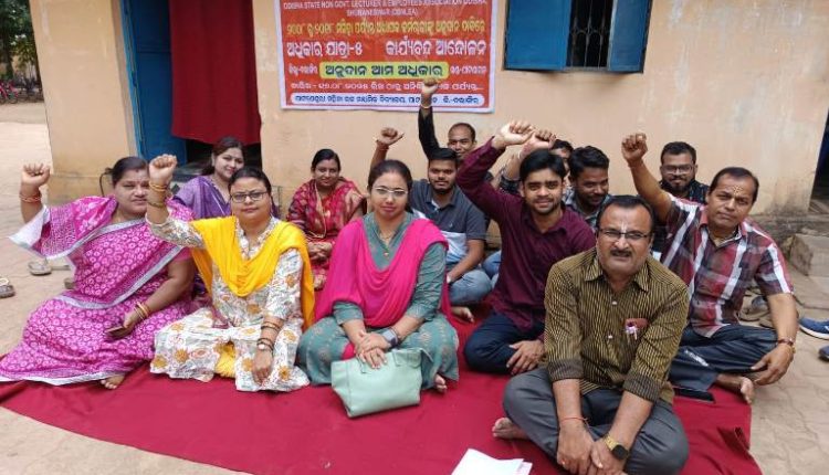 ପାଟଣାଗଡ଼ : ଓଡ଼ିଶା ରାଜ୍ୟ ବେସରକାରୀ ଅଧ୍ୟାପକ ଓ କର୍ମଚାରୀ ସଂଘର ରାଜ୍ୟ ସଭାପତି ବିଶ୍ୱରଞ୍ଜନ ଦାଶଙ୍କ ଆହ୍ୱାନ କ୍ରମେ ୨୦୦୮-୨୦୧୮ ମଧ୍ୟରେ ପରିଚାଳନା କମିଟି ଦ୍ୱାରା ନିଯୁକ୍ତ ଅଧ୍ୟାପକ ଓ କର୍ମଚାରୀମାନଙ୍କୁ ସରକାର ଅନୁଦାନ ଦେଇ ସରକାରୀଭୁକ୍ତ କରିବା ପାଇଁ ତା ୧୬-୦୮-୨୦୨୫ ଦାବି ଦିବସରୁ ସମଗ୍ର ରାଜ୍ୟରେ ସଂଘ ତରଫରୁ ଆରମ୍ଭ ହୋଇଥିବା କାର୍ଯ୍ୟବନ୍ଦ ଆନ୍ଦୋଳନ ଆଜି ଷୋଡ଼ଶ ଦିନରେ ପହଞ୍ଚିଛି । ଏହି ଅବସରରେ ପାଟଣେଶ୍ୱରୀ ମହିଳା ଉଚ୍ଚ ମାଧ୍ୟମିକ ବିଦ୍ୟାଳୟ ପାଟଣାଗଡ଼ ଠାରେ ପାଟଣାଗଡ଼ ଖଣ୍ଡ ସଂଯୋଜକ ପୂର୍ଣ୍ଣଚନ୍ଦ୍ର ସାହୁଙ୍କ ତତ୍ୱାବଧାନରେ ଅନୁଷ୍ଠିତ କାର୍ଯ୍ୟବନ୍ଦ ଆନ୍ଦୋଳନ ସମୟରେ ଦୀର୍ଘ ଦିନ ଆନ୍ଦୋଳନ ଯୋଗୁଁ ବିଦ୍ୟାଳୟରେ ପାଠପଢ଼ା ପ୍ରଭାବିତ ହୋଇ ଠପ୍ ଥିବା ସତ୍ତ୍ବେ ସରକାର ନୀରବ ଦ୍ରଷ୍ଟା ସାଜିଥିବାରୁ ତୀବ୍ର ଅସନ୍ତୋଷ ପ୍ରକାଶ ପାଇଥିଲା । ଏହି ଅବସରରେ ୨୦୦୮-୨୦୧୮ ମଧ୍ୟରେ ପରିଚାଳନା କମିଟି ଦ୍ୱାରା ନିଯୁକ୍ତ ପାଇଥିବା ସମସ୍ତ ଅଧ୍ୟାପକ ଓ କର୍ମଚାରୀମାନେ ଯଥାଶୀଘ୍ର ସମାନ କାମକୁ ସମାନ ଦରମା ପ୍ରଦାନ କରି ତାଙ୍କୁ ତାଙ୍କ ନ୍ୟାୟ ପ୍ରଦାନ କରନ୍ତୁ ବୋଲି ଅନୁରୋଧ କରିଥିଲେ ।