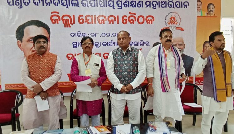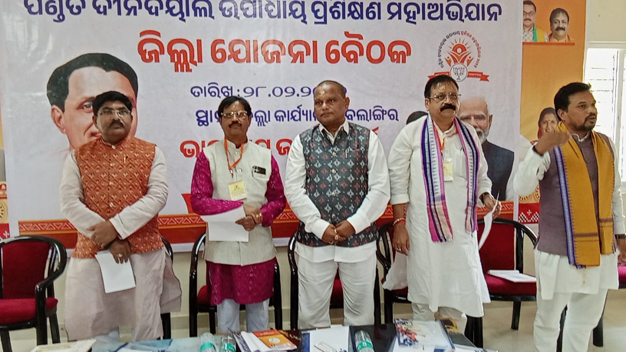 ବଲାଙ୍ଗିର, (କେପିଏନ୍ଏସ୍) : ବଲାଙ୍ଗିର ଜିଲ୍ଲା ଭାରତୀୟ ଜନତା ପାର୍ଟି ତରଫରୁ ଆଜି ପଣ୍ଡିତ ଦୀନଦୟାଲ ଉପାଧ୍ୟାୟ ପ୍ରଶିକ୍ଷଣ ମହାଅଭିଯାନ (ଜିଲ୍ଲା ଯୋଜନା ବୈଠକ) କାର୍ଯ୍ୟକ୍ରମ ଅନୁଷ୍ଠିତ ହୋଇଯାଇଛି । ଏହି କାର୍ଯ୍ୟକ୍ରମରେ ରାଜ୍ୟ ବିଜେପି ସାଧାରଣ ସମ୍ପାଦକ ସୀମାଞ୍ଚଳ ଖଟେଇ, ଜିଲ୍ଲା ବିଜେପି ସଭାପତି ଶ୍ରୀବତ୍ସ ବେହେରା, ରାଜ୍ୟ ବିଜେପି ଉପସଭାପତି ଶିବାଜୀ ମହାନ୍ତି, ଜିଲ୍ଲା ବିଜେପି ବିଧାନସଭା ପ୍ରାର୍ଥୀ ଗୋପାଳଜୀ ପାଣିଗ୍ରାହୀ ଓ ଦେବଜ୍ୟୋତି ମୁଣ୍ଡ ମଞ୍ଚରେ ଉପସ୍ଥିତ ଥିଲେ । ଜିଲ୍ଲା ବିଜେପିର ସମସ୍ତ ମଣ୍ଡଳ ସଭାପତି ଓ ବରିଷ୍ଠ କାର୍ଯ୍ୟକର୍ତ୍ତାମାନେ ଉପସ୍ଥିତ ଥିଲେ । ମହିଳା ମୋର୍ଚ୍ଚା ସଭାପତି ଓ ମହିଳା ମୋର୍ଚ୍ଚାର କାର୍ଯ୍ୟକର୍ତ୍ତାମାନେ ବିଜେପିର ବରିଷ୍ଠ କାର୍ଯ୍ୟକର୍ତ୍ତାମାନେ ଉପସ୍ଥିତ ଥିଲେ । ଏହି କାର୍ଯ୍ୟକ୍ରମର ମୁଖ୍ୟ ଉଦ୍ଦେଶ୍ୟ ହେଲା ଜିଲ୍ଲା ସ୍ତରୀୟ ପ୍ରଶିକ୍ଷଣ ମହାଅଭିଯାନ ଭାରତୀୟ ଜନତା ପାର୍ଟି ତରଫରୁ ବିଜେପି କାର୍ଯ୍ୟକର୍ତ୍ତାମାନଙ୍କୁ ସମସ୍ତ ବିଷୟରେ ଯେମିତି ଜିଲ୍ଲାର ସମସ୍ତ ବ୍ଲକ ସ୍ତରୀୟ ଓ ପଞ୍ଚାୟତ ସ୍ତରୀୟ, ବୁତ ସ୍ତରୀୟ, ମଣ୍ଡଳ ସ୍ତରୀୟକୁ ନେଇ ବିଜେପି କର୍ମୀମାନଙ୍କୁ ନେଇ ପ୍ରଶିକ୍ଷଣ ଦିଆଯିବ । ଏହି କାର୍ଯ୍ୟକ୍ରମର ନାମ ଦିଆଯାଇଛି ପଣ୍ଡିତ ଦୀନଦୟାଲ ଉପାଧ୍ୟାୟ ପ୍ରଶିକ୍ଷଣ ମହାଅଭିଯାନ । ଆଜିର ଏହି କାର୍ଯ୍ୟକ୍ରମରେ ପ୍ରଥମେ ବନ୍ଦେ ମାତରଂ ଗାନ କରାଯାଇଥିଲା ଓ ଜିଲ୍ଲା ଯୋଜନା ବୈଠକ ଅନୁଷ୍ଠିତ ହୋଇଥିଲା । ଏହି କାର୍ଯ୍ୟକ୍ରମରେ ଶହ ଶହ ସଂଖ୍ୟାରେ ବିଜେପି କାର୍ଯ୍ୟକର୍ତ୍ତା ଉପସ୍ଥିତ ଥିଲେ ।
