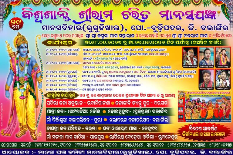 ଲୋଇସିଂହା, (ବିମଳେନ୍ଦୁ ସାହୁ) : ଲୋଇସିଂହା ଥାନା ଆଗଲପୁର ବ୍ଲକ ଵେନ୍ଦ୍ରା ରଘୁନାଥ ମଠର ମହନ୍ତ ଯମୁନା ଦାସ ମହାରାଜ ଏବଂ ଝରେଇବାହାଲି ମଠାଧୀଶ ବଳରାମ ଦାସଙ୍କ ମିଳିତ ପୌରହିତ୍ୟରେ ସ୍ଥାନୀୟ ରୁଗୁଡ଼ିଖାଲ ମାନସ ବିହାର ଠାରେ ବିଶ୍ଵଶାନ୍ତି ନିମିତ୍ତ ୨୯ ତମ ଶ୍ରୀରାମ ଚରିତ ମାନସ ଯଜ୍ଞ ତ୍ରିବେଣୀ ଅମାବାସ୍ୟା ତିଥିରୁ ଆରମ୍ଭ ହୋଇଛି । ଏହି ଅବସରରେ କଳସ ଶୋଭାଯାତ୍ରା ଅନୁଷ୍ଠିତ ହୋଇଯାଇଛି । ନବଦିନ ବ୍ୟାପୀ ହେବାକୁ ଥିବା ଏହି ଯଜ୍ଞରେ ଗୌରିଶଙ୍କର ମିଶ୍ର ଯଜ୍ଞାଚାର୍ଯ୍ୟ ଦାୟିତ୍ଵ ନିର୍ବାହ କରୁଥିବା ବେଳେ ଓଡ଼ିଆ ବ୍ୟାସ ଭାବେ ତରଣିସେନ୍ ତ୍ରିପାଠୀ ଓ ହିନ୍ଦୀରେ ବରୁଣ ଶତପଥୀ ରାମଚରିତ ମାନସ ପଠନ କରିବେ । ମାନସ ବିହାରକୁ ଅଯୋଧ୍ୟା ଓ ନେଗିପାଲିକୁ ମିଥିଳା ଭାବେ ଚିତ୍ରଣ କରାଯାଇ ସୀତା ବିବାହ, ଶବର ଲୀଳା, ଶବରୀର ଫଳଖିଆ ପ୍ରଭୃତି ରୂପକ ଆୟୋଜିତ ହେବ । ଆସନ୍ତା ୨୨ ରୁ ୨୬ ତାରିଖ ପର୍ଯ୍ୟନ୍ତ ପ୍ରତ୍ୟହ ସାଂସ୍କୃତିକ କାର୍ଯ୍ୟକ୍ରମ ଆୟୋଜିତ ହେବାକୁ ଥିବା ବେଳେ ୨୫ ତାରିଖରୁ ଷୋହଳ ପ୍ରହରୀ ନାମଯଜ୍ଞ ଆରମ୍ଭ ହେବ । ମାନସ ଯଜ୍ଞ କମିଟି ସଭାପତି ଯୁଧିଷ୍ଠିର ପଧାନଙ୍କ ପ୍ରତ୍ୟକ୍ଷ ତତ୍ୱାବଧାନରେ ବିକ୍ରମ ସିଂରାଏ, ଉତ୍ତମ ଭୋଇ, ବେଦପତି ପଧାନ, କିଶୋର ଦର୍ଜି, ମଧୁସୂଦନ ପଧାନ, ସୁଧାଂଶୁ ସାହୁଙ୍କ ସମେତ ଆଖପାଖ ୧୨ ଖଣ୍ଡର ଗ୍ରାମବାସୀ ମାନସ ଯଜ୍ଞ ପରିଚାଳନାରେ ସହଯୋଗ କରୁଥିବା ଆୟୋଜକଙ୍କ ସୂତ୍ରରୁ ଜଣାଯାଇଛି ।