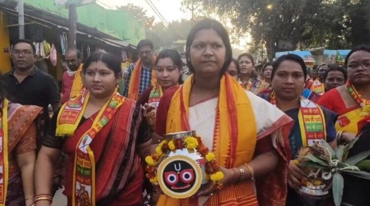 ଟିଟିଲାଗଡ଼, (ସଞ୍ଜୟ କୁମାର ନାୟକ) : ଆଜି ମଙ୍ଗଳବାର ଅପରାହ୍ନରେ ସ୍ଥାନୀୟ ଜଗନ୍ନାଥ ମନ୍ଦିର ପ୍ରାଙ୍ଗଣରେ ଟିଟିଲାଗଡ଼ ପୌର ପରିଷଦ ପକ୍ଷରୁ ଜଗନ୍ନାଥଙ୍କ ଅର୍ପଣ ରଥର ପରିକ୍ରମା ଆରମ୍ଭ ହୋଇଯାଇଛି । ଏହି ଅର୍ପଣ ରଥ ପରିକ୍ରମା ଶୁଭ ଅବସରରେ ମନ୍ତ୍ରୀ ଶ୍ରୀମତୀ ଟୁକୁନି ସାହୁ ଜଗନ୍ନାଥ ମନ୍ଦିର ଭିତରକୁ ଯାଇ ପ୍ରଥମେ ଦର୍ଶନ ଲାଭ କରି ପତାକା ଦେଖାଇ ପରିକ୍ରମା ଆରମ୍ଭ କରିବା ସହ ନିଜେ ଜନସାଧାରଣଙ୍କ ସହ ଚାଲି ଚାଲି ୱାର୍ଡକୁ ୱାର୍ଡ ବୁଲୁଛନ୍ତି । ଏହି ରଥ ସହରର ସମସ୍ତ ୱାର୍ଡ ବୁଲିବା ସହ ଶ୍ରୀ ଜଗନ୍ନାଥଙ୍କ ପାଇଁ ଚାଉଳ ଓ ଗୁଆ ସଂଗ୍ରହ କରାଯାଉଛି । ଏହି ଅର୍ପଣ ରଥ ପରିକ୍ରମା ଅବସରରେ ମନ୍ତ୍ରୀଙ୍କ ପ୍ରତିନିଧି ଅରୁଣ ମିଶ୍ର, ସମସ୍ତ ବିଜେଡି କାଉନ୍ସିଲର୍, ପୌର ପରିଷଦର ସମସ୍ତ କର୍ମଚାରୀମାନେ ସହଯୋଗ କରିଥିଲେ । ଭଜନ କୀର୍ତ୍ତନ ସହ ଜଗନ୍ନାଥଙ୍କ ଭଜନର ତାଳେ ତାଳେ ଚାଲିଛି ସହର ପରିକ୍ରମା ।