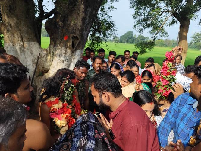 ଦେଓଗାଁ, (ମନୀଷ କୁମାର ସାହୁ) : ଦେଓଗାଁ ବ୍ଲକ ଜରାସିଂହା ଯାତ୍ରାର ବଉରାପିଟା ଗୁଡ଼ିରୁ ନିଶିଗୁଡ଼ି ଖଳାକୁ ରବିବାର ସକାଳ ୯ଟାରେ ମାଁ ପାଟଖଣ୍ଡା ଦେବୀଙ୍କ ଆଗମନ ହୋଇଥିଲା । ସେହିପରି ଅପରାହ୍ନ ୧ଟା ପରେ ଜେନାପୂଜା ଓ ବିରୁପାଣି ପୂଜା ଏବଂ ରାତ୍ର ୯ଟାରେ ନିଶିଗୁଡ଼ି ଖଳାରେ ଯାତ୍ରା ଆରମ୍ଭ ହୋଇଥିଲା । ଏହି ପୂଜା ସମୟରେ ଜିଲ୍ଲା ତଥା ଜିଲ୍ଲା ବାହାରରୁ ମାନସିକ ଧାରୀମାନେ ଆସି ଗୁହାରୀ କରିଥିବା ବେଳେ ପୂର୍ବରୁ ଏପରି ଗୁହାରୀ କରି ସଫଳତା ପାଇଥିବା ଶ୍ରଦ୍ଧାଳୁମାନେ ଆସି ମାନସିକ ପ୍ରଦାନ କରିଥିଲେ । ଚୀରାଚରିତ ପ୍ରଥା ଅନୁସାରେ ଯାତ୍ରା ସମ୍ପନ୍ନ ହେବା ପରେ ପୁର୍ବାହ୍ନ ୪ଟା ପରେ ଦେଝାରକୁ ପାଟଖଣ୍ଡା ଦେବୀଙ୍କ ବାହୁଡ଼ା ବିଜୟ ବା ଅନ୍ତିମ ଯାତ୍ରା ହେବ । କେବଳ ଦେଓଗାଁ ବ୍ଲକ କି ବଲାଙ୍ଗିର ଜିଲ୍ଲା ନୁହେଁ ରାଜ୍ୟର ବିଭିନ୍ନ ସ୍ଥାନରୁ ଶ୍ରଦ୍ଧାଳୁଙ୍କ ସୁଅ ଛୁଟୁଛି । ବିଭିନ୍ନ ଗାଁର ସ୍ୱେଚ୍ଛାସେବୀ ଅନୁଷ୍ଠାନ ପୁଲିସ ପ୍ରଶାସନ ପକ୍ଷରୁ ଶାନ୍ତି ଶୃଙ୍ଖଳା ପାଇଁ ସବୁ ପ୍ରକାର ବ୍ୟବସ୍ତା କରାଯାଉଛି । ଆଜି ବାହୁଡ଼ା ବିଜୟ ପରେ ୮ତାରିଖ ବୁଧବାର ଦିନ ଅଷ୍ଟମଙ୍ଗଳା ପର୍ବ କରାଯିବାକୁ ମୁଖ୍ୟ ଆୟୋଜକ ବିଏନ୍ଏଏ ଓ ଗ୍ରାମ୍ୟ ଉନ୍ନୟନ କମିଟି ଜରାସିଂହା ପକ୍ଷରୁ ସୂଚନା ମିଳିଛି ।