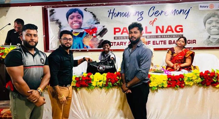 ବଲାଙ୍ଗିର : ଜାତୀୟ ପାରା ଆର୍ଚେରୀ ନ୍ୟାସନାଲ ଚମ୍ପିୟାନସିପରେ ଚମକିଥିବା ପାୟଲ ନାଗଙ୍କୁ ଆଜି ସ୍ଥାନୀୟ ସାମ୍ବାଦିକ ଭବନ ଠାରେ ରୋଟାରୀ କ୍ଲବ ଅଫ୍ ଇଲାଇଟ୍ ପକ୍ଷରୁ ସ୍ୱାଗତ ସମ୍ବର୍ଦ୍ଧନା ଦିଆଯାଇଛି । ରୋଟାରୀ କ୍ଲବ ଅଫ୍ ଇଲାଇଟ୍ ପକ୍ଷରୁ ଆୟାଜିତ ଏହି ସ୍ୱାଗତ ସମ୍ବର୍ଦ୍ଧନା ଉତ୍ସବରେ ବଲାଙ୍ଗିରର ବହୁ ସଂଗଠନ ଯୋଗ ଦେଇ ପାୟଲ ନାଗଙ୍କୁ ଫୁଲ ତୋଡ଼ା ଓ ଉପଢୌକନ ଦେଇ ସ୍ୱାଗତ ସମ୍ବର୍ଦ୍ଧନା ଜଣାଇବା ସହ ଉଜ୍ୱଳମୟ ଭବିଷ୍ୟତ ପାଇଁ କାମନା କରିଥିଲେ । ସ୍ୱାଗତ ସମ୍ବର୍ଦ୍ଧନା ଉତ୍ସବର ମଂଚରେ ପାୟଲ ନାଗଙ୍କ ସହ ପ୍ରଫେସର ମଦୁସୂଦନ ପତି, ରୋଟାରୀ କ୍ଲବ ଅଫ୍ ଇଲାଇଟ୍ର ସଭାପତି ଶ୍ରୀମତୀ ଅର୍ଚ୍ଚନାର ଶତପଥୀ, ରୋଟାରିଏନ୍ ଧର୍ମେନ୍ଦ୍ର ପ୍ରସାଦ ନନ୍ଦ ମଂଚାନୀନ ଥିଲେ ।