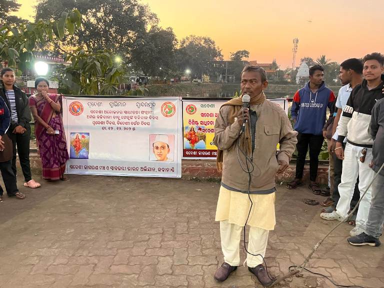 କଳାହାଣ୍ଡି, (ଶୁଭେନ୍ଦୁ କୁମାର ପଣ୍ଡା) : ସ୍ୱଦେଶୀ ଜାଗରଣ ମଞ୍ଚ ଓ ସ୍ୱାବଲମ୍ବୀ ଭାରତ ଅଭିଯାନ, କଳାହାଣ୍ଡି ପକ୍ଷରୁ ଡିସେମ୍ବର ୧୨ ସ୍ୱଦେଶୀ ଆନ୍ଦୋଳନର ବଳିଦାନୀ ବବୁଗେନୁଙ୍କ ବଳିଦାନ ଦିବସରେ ପୂର୍ବାହ୍ନରେ ସ୍ଥାନୀୟ ସରସ୍ଵତୀ ଶିଶୁ ବିଦ୍ୟା ମନ୍ଦିର, ବ୍ରଜ ବିହାରର ପ୍ରାର୍ଥନା ସଭାରେ ମଞ୍ଚର ପ୍ରାନ୍ତ ପରିଷଦ ସଦସ୍ୟ କୈଶବ ବିହାରୀ ଯୋଗ ଦେଇ ବବୁଗେନୁଙ୍କ ତୈଳଚିତ୍ରରେ ଶ୍ରଦ୍ଧାଞ୍ଜଳି ଅର୍ପଣ ପୂର୍ବକ ଶିଶୁ ଭାଇଭଉଣୀ ଓ ଆଚାର୍ଯ୍ୟ ଆଚାର୍ଯ୍ୟା ମାନଙ୍କୁ ନିଜ ଆଚରଣରେ ସ୍ୱଦେଶୀ ଆପଣାଇବା ପାଇଁ ଆହ୍ୱାନ ଦେଇଥିଲେ । ଅପରାହ୍ନରେ ପୁରୁଣା ପଡ଼ା ସ୍ଥିତ ରାଧାକୃଷ୍ଣ ମନ୍ଦିରରେ ଏକ ବୈଠକ ଅନୁଷ୍ଠିତ ହୋଇଥିଲା । ଜିଲ୍ଲା ସଂଯୋଜକ ଗଜିନ୍ଦ୍ର ଡାକୁଆଙ୍କ ନେତୃତ୍ୱରେ ସନ୍ଧ୍ୟାରେ ଏକ ସ୍ୱଦେଶୀ ସନ୍ଦେଶ ଯାତ୍ରା ବାହାରି ଜିଲ୍ଲା ମୁଖ୍ୟ ଚିକିତ୍ସାଳୟ ଛକ ଠାରେ ଏକ ପଥ ପ୍ରାନ୍ତ ସଭା ଅନୁଷ୍ଠିତ ହୋଇଥିଲା । ବିଭାଗ ସଂଯୋଜକ ନକୁଳ ନାୟକଙ୍କ ସଂଯୋଜନାରେ ମଞ୍ଚର ରାଷ୍ଟ୍ରୀୟ ପରିଷଦ ସଦସ୍ୟ ମନୋଜ କୁମାର ନାୟକ, ପ୍ରାନ୍ତ ପରିଷଦ ସଦସ୍ୟ କୈଶବ ବିହାରୀ, ଗ୍ରାହକ ପଞ୍ଚାୟତ ରାଜ୍ୟ କାର୍ଯ୍ୟକାରିଣୀ ସଦସ୍ୟ ସୁଶିଲ ପଣ୍ଡା, ଭାରତୀୟ ମଜଦୂର ସଂଘର ବରିଷ୍ଠ କାର୍ଯ୍ୟକର୍ତ୍ତା ରମେଶ ରାଉଳ, ରାଜ୍ୟ ମହିଳା ନେତ୍ରୀ ଝୁନୂପମା ଶତପଥୀ ପ୍ରମୁଖ ଯୋଗ ଦେଇ ସ୍ୱଦେଶୀ ଉଦ୍ୟମିତା ଓ ସହକାରିତା ଆଧାରରେ ବିଦେଶୀ ବର୍ଜ୍ଜନ ସହିତ ଦେଶକୁ ୧୦ ଟ୍ରିଲିୟନ୍ ଡଲାର ଅର୍ଥନୀତିର ଦେଶ ଭାବରେ ପ୍ରତିଷ୍ଠିତ କରିବାର ସଂକଳ୍ପ ନେଇ ଏକ ବେରୋଜଗାର ମୁକ୍ତ, ସ୍ୱରୋଜଗାର ଯୁକ୍ତ ସ୍ୱଦେଶୀ ଜ୍ଞାନ କୌଶଳ ଆଧାରରେ ସାମଗ୍ରିକ ଭାବରେ ବିକଶିତ ସମୃଦ୍ଧଶାଳୀ ଭାରତ ନିର୍ମାଣ ପାଇଁ ଆହ୍ୱାନ ଦେଇଥିଲେ । ଅନ୍ୟମାନଙ୍କ ମଧ୍ୟରେ ମଞ୍ଚର ପ୍ରାନ୍ତ ଯୁବା ପ୍ରମୁଖ ଗୋଦାବରିଶ ପାତ୍ର, ଜିଲ୍ଲା ମହିଳା ପ୍ରମୁଖ ଜୟନ୍ତୀ ବିହାରୀ, ଭାଜପା ନେତ୍ରୀ ଅନିତା ବିଶ୍ୱାଳ, ନଳିନୀ ବାଗଙ୍କ ସମେତ ଇ ଦୋସ୍ତିର ପ୍ରଶିକ୍ଷାର୍ଥୀମାନେ ଉପସ୍ଥିତ ରହି ବିଦେଶୀ ବସ୍ତୁର ଦହନ ସହିତ ସ୍ୱଦେଶୀ ଗ୍ରହଣ ପାଇଁ ସଂକଳ୍ପ ନେଇଥିଲେ ।