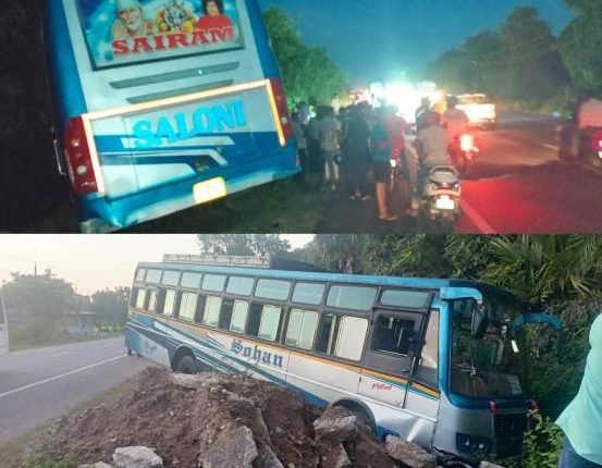 କୁକୁଡାଖଣ୍ଡି ରାଉତ ବନ୍ଦ ନିକଟରେ ଭାରସାମ୍ୟ ହରାଇ ଗର୍ତ୍ତ ମଧ୍ୟରେ ଫସିଗଲା ବସ୍ : ଅଳ୍ପକେ ବଞ୍ଚିଲେ ସମସ୍ତ ବସ୍ ଯାତ୍ରୀ