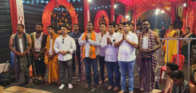 ବ୍ରହ୍ମପୁର, (କେ. ସତ୍ୟନାରାୟଣ ରେଡ୍ଡୀ) : ଗଞ୍ଜାମ ଜିଲ୍ଲା ସଦର ମହକୁମା ଛତ୍ରପୁର ସହରର ମାର୍କେଟ ରୋଡ୍ରେ ଆୟୋଜିତ ପୂଜାମଣ୍ଡପରେ ମା’ ଶ୍ୟାମାକାଳୀ ପୂଜା ବର୍ଣ୍ଣାଢ଼୍ୟ ସମାରୋହରେ ପାଳିତ ହୋଇଆସୁଛି । ଏଠାରେ ପ୍ରତିଦିନ ସନ୍ଧ୍ୟାବେଳେ ଦେବୀଙ୍କ ଆରତୀ ଦର୍ଶନ ସମାରୋହରେ ଖୁବ୍ ଉତ୍ସବମୁଖର ହୋଇଉଠିଛି । ରବିବାର ଅପରାହ୍ନ ସମୟରେ ଛତ୍ରପୁର ବିଧାୟକ କୃଷ୍ଣଚନ୍ଦ୍ର ନାୟକ ଯୋଗଦେଇ ଦେବୀଙ୍କ ଦର୍ଶନ କରି ବିଭୂକୃପା ଲାଭ କରିଛନ୍ତି । ଦୈନିକ ସନ୍ଧ୍ୟାବେଳେ ଏହି ପୂଜା ମଣ୍ଡପରେ ବହୁ ଗଣ୍ୟମାନ୍ୟ ବ୍ୟକ୍ତି ଯୋଗଦେଇ ମା’ କାଳୀଙ୍କ ଶୁଭାଶିଷ ଲାଭ କରି ଆସୁଛନ୍ତି ।
