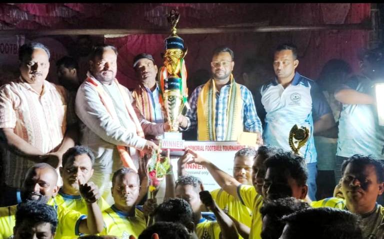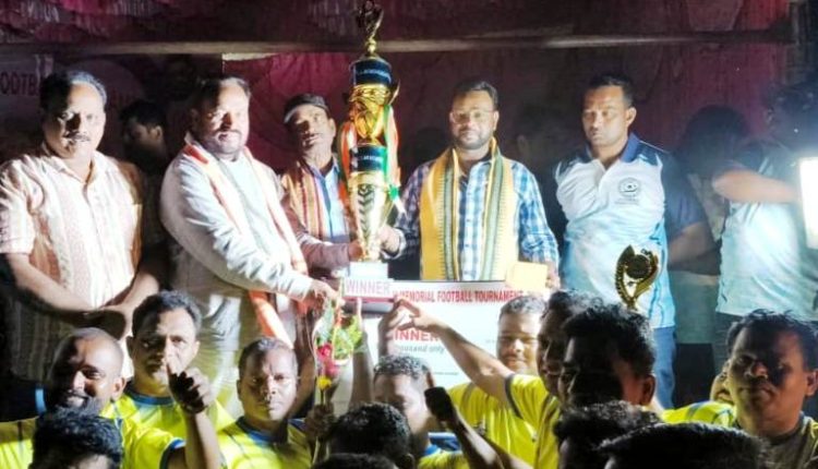 ସୁବର୍ଣ୍ଣପୁର, (ରାଜ କିଶୋର ତ୍ରିପାଠୀ) : ସୋନପୁର ସୁରେଶ୍ଵରୀ ଫୁଟବଲ ଏକାଡେମୀ ତରଫରୁ ଆଜି ସୋନପୁର କଲେଜ ପଡିଆ ଠାରେ ଚତୁର୍ଥ ଲିପୁ ମେମୋରିଆଲ ଅଲ୍ ଓଡିଶା ଭେଟେରାନ୍ ଫୁଟବଲ ଟୁର୍ଣ୍ଣାମେଣ୍ଟ ଗତକାଲି ଅନୁଷ୍ଠିତ ହୋଇଥିବା ବେଳେ ଏଥିରେ ଫୁଲବାଣୀ ଦଳ ଚମ୍ପିୟାନ ହୋଇଛନ୍ତି । ଦିନିକିଆ ଏହି ଭେଟେରାନ ଫୁଟବଲ ଟୁର୍ଣ୍ଣାମେଣ୍ଟରେ ଓଡିଶାର ବିଭିନ୍ନ ଜିଲ୍ଲାରୁ ଆସିଥିବା ଭେଟେରାନ ଖେଳାଳୀମାନେ ବହୁତ ଉଚ୍ଚ ମାନର ଖେଳ ପ୍ରଦର୍ଶନ କରିଥିଲେ । ଆଜି ପ୍ରଥମାର୍ଦ୍ଧରେ ତରଭା, ଏମସିଏଲ୍ ବୁର୍ଲା, ବୌଦ୍ଧ, ସୁବର୍ଣ୍ଣପୁର, ପାଟଣାଗଡ଼, ସମ୍ବଲପୁର, ଫୁଲବାଣୀ, ବଲାଙ୍ଗିର, ଖେଳିଥିବା ବେଳେ ଫାଇନାଲ ଖେଳ ବୁର୍ଲା ଓ ଫୁଲବାଣୀ ମଧ୍ୟରେ ହୋଇଥିଲେ ହେଁ ଟ୍ରାଇବ୍ରେକର ଯୋଗେ ଫୁଲବାଣୀ ଦଳ ୪-୩ ଗୋଲରେ ବିଜୟୀ ହୋଇଥିଲେ । ଏହି ଟୁର୍ଣ୍ଣାମେଣ୍ଟରେ ମୁଖ୍ୟ ଅତିଥି ଭାବରେ ଯୁବନେତା ତଥା କଳାପଥର ଏମ୍ ପି ଏସ୍ ଅରବିନ୍ଦ ବାରିକ ଅନ୍ୟତମ ଅତିଥି ଭାବରେ କଇରୁ ସ୍ଵାଇଁ, ଅମିୟ ଦାଶ, ସତ୍ୟ ନାରାୟଣ ଦରୱ।ନ୍, ଦିଲୀପ ପାତ୍ର ପ୍ରମୁଖ ଯୋଗଦେଇ ବିଜୟୀ ଫୁଲବାଣୀ ଭେଟେରାନ୍ ଦଳଙ୍କୁ ଟ୍ରଫି ପ୍ରଦାନ କରିଥିଲେ । ବେଷ୍ଟ ସ୍କୋରର୍ ବାବୁ ପ୍ରଧାନ, ପ୍ରେମଚାନ୍ଦ ସିଂ ମେନ ଅଫ୍ ଦି ଟୁର୍ଣ୍ଣାମେଣ୍ଟ, ବେଷ୍ଟ ଡିଫେନ୍ସ ନିଲୁ ମାଝୀ, ବେଷ୍ଟ ଗୋଲକିପର୍ ପାର୍ଥ ସାରଥି ମଲ୍ଲିକ ସେହିପରି ସୁବର୍ଣ୍ଣପୁରର କିଛି ଭେଟେରାନ୍ ଫୁଟବଲର କଇରୁ ସ୍ଵାଇଁ, ଶ୍ୟାମ ସୁନ୍ଦର ଡାଙ୍ଗୁଆ, ଗଣେଶ ରାମ ମେହେର, ମନୋହର ମହମ୍ମଦ, ସତ୍ୟନାରାୟଣ ମିଶ୍ର, ତାରିଣୀ ମିଶ୍ର, ବିବେକାନନ୍ଦ ମହାନ୍ତି, ସୁବର୍ଣ୍ଣା ଫୁଟବଲ ୟୁଟ୍ୟୁବ ଚେନାଲରେ ପ୍ରତ୍ୟକ୍ଷ ଲାଇଭ୍ ଚେନାଲର ମୁଖ୍ୟ ରାକେଶ ନାଗଙ୍କୁ ମଧ୍ୟ ସମ୍ବର୍ଦ୍ଧିତ କରାଯାଇଥିଲା । ଖେଳକୁ ପରିଚାଳନା ସୁଦାମ ଜଗଦଲା, ବାବୁଲାଲ ସାହୁ, ସିଦ୍ଧାର୍ଥ ପାତ୍ର, ଜଗତ ଜଗଦଲା, ଦୁର୍ଗା ମାଝୀ, ବଦ୍ରି ପ୍ରସାଦ ହୋତା, ପ୍ରମୁଖ ଖେଳକୁ ପରିଚାଳନା କରିଥିବା ବେଳେ ସଭାପତି ରାଜେନ୍ଦ୍ର କୁମାର ସାହୁ, ନିଶାନ୍ତ ମହାନ୍ତି, ଶାସ୍ଵତ ମିଶ୍ର, ସ୍ଵରୁପ ପାତ୍ର, ହରିହର ପଟ୍ଟନାୟକ, ଶରତ ମହାପାତ୍ର, ସୂର୍ଯ୍ୟ ପ୍ରଧାନ, ସିଦ୍ଧାର୍ଥ ମହାନ୍ତି, ସୁରେନ୍ଦ୍ର ବାରିକ, ଧର୍ମପଦ ଦୀପ୍ (ସୁରଟି), ଆଦିତ୍ୟ ମହାପାତ୍ର, ଜ୍ୟୋତିର୍ମୟ ମିଶ୍ର, ମନୋଜ ଜେନା, ସନ୍ତୋଷ ନାଏକ, ଦେବାଶିଷ ପଟ୍ଟନାୟକ, ସୁବ୍ରତ ସେଠୀ, ଅନିଲ ସାହୁ ପ୍ରମୁଖ ସହଯୋଗ କରିଥିଲେ ।