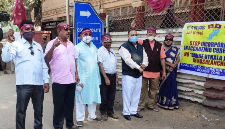‘ବନ୍ଦେ ଉତ୍କଳ ଜନନୀ’କୁ ରାଜ୍ୟ ସଂଗୀତର ମର୍ଯ୍ୟାଦା ଦେବା ଓ ଶିକ୍ଷା ପାଠ୍ୟକ୍ରମରେ ତାହାକୁ ସାମିଲ୍ କରିବାର ନିଷ୍ପତ୍ତିକୁ ତୁରନ୍ତ ପ୍ରତ୍ୟାହାର ଦାବୀରେ କୋସଲ ରାଜ୍ୟ ସମନ୍ୱୟ ସମିତିର ବିକ୍ଷୋଭ