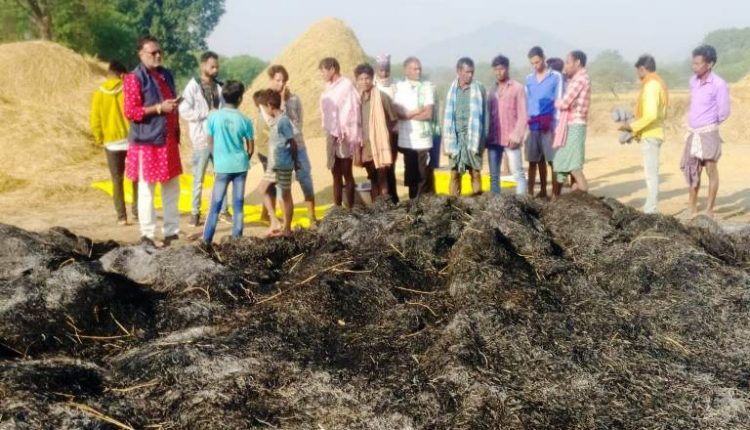 ବଙ୍ଗୋମୁଣ୍ଡା, (ଅର୍ଜୁନ କୁମାର ହଂସ) : ବଲାଙ୍ଗିର ଜିଲ୍ଲା ବଙ୍ଗୋମୁଣ୍ଡା ବ୍ଲକ ଅର୍ଶାତୁଲା ପଂଚାୟତ ବାଲବେଙ୍ଗ ଗ୍ରାମରେ ଥିବା କୌତୁକ ନାଗଙ୍କ ଧାନ ଖଳା ଠାରେ ଗାଁର ଚାରି ଜଣ ଗରିବ ଚାଷୀମାନେ ମିଶି ଏକା ସାଙ୍ଗରେ ମିଶି ଧାନକୁ ଧାନଖଳାରେ ରଖିଥିଲେ । କୋହଳା ପାଗ ଓ ଲଘୁଚାପ ଯୋଗୁଁ ଧାନ ସବୁ ଖଳାରେ ଗଚ୍ଛିତ ଥିଲା । ଧାନକୁ ସକାଳେ କେହି ଦୃବୃର୍ତ୍ତ ନିଆଁ ଲଗାଇ ଦେବା ଫଳରେ ପାଂଚ ଏକରରୁ ଉଦ୍ଧ୍ୱର୍ ଚାଷ ଜମିରେ ହୋଇଥିବା ଧାନ ଫସଲ ପୋଡି ଯାଇ ପାଉଁଶ ହୋଇଯାଇଥିବା ବେଳେ କୌଣସି ସୂତ୍ରରୁ ଚାଷୀମାନେ ଖବର ପାଇ ପହଂଚି ପାଖରେ ଥିବା ଏକ ବୋରୱେଲରୁ ପାଣି ଆଣି ନିଆଁ ଲିଭେଇବାକୁ ଚେଷ୍ଟା କରିଥିଲେ ମଧ୍ୟ କୌଣସି ସୁଫଳ ମିଳି ପାରିନଥିଲା । ଗତକାଲି ବିଭିନ୍ନ ଗଣମାଧ୍ୟମରେ ଏହି ଖବର ପ୍ରକାଶିତ ହେବା ପରେ କ୍ଷତିଗ୍ରସ୍ତ ହୋଇଥିବା ୪ ଜଣ ଚାଷୀଙ୍କୁ ଭେଟିଛନ୍ତି ବିଜେଡି ନେତା ତଥା କଣ୍ଟାବାଞ୍ଜି ବିଜେଡି ବିଧାୟକ ପ୍ରାର୍ଥୀ ଅଜୟ ଦାସ । ଚାଷୀମାନେ ମୁଣ୍ଡରେ ହାତ ଦେଇ ହତାଶ ହୋଇଯାଇଛନ୍ତି । ଧାର କରଜ କରି ବର୍ଷକର ପରିଶ୍ରମରେ ଧାନ ଫସଲ ଅମଲ କରିଥିଲେ । ଗାଁର କୌତୁକ ନାଗ, ନନ୍ଦ ଥପା, ସମ୍ପତ୍ତି ନାଏକ, ସଂକୀର୍ତ୍ତନ ଥପା ଏବେ ବେସାହାରା ହୋଇଯାଇଛନ୍ତି । ସରକାରୀ ଅଧିକାରୀମାନଙ୍କ ସହ ଆଲୋଚନା କରି ପଦକ୍ଷେପ ନିଆଯିବ ବୋଲି ଶ୍ରୀ ଦାସ ସୂଚନା ପ୍ରଦାନ କରିଛନ୍ତି ।