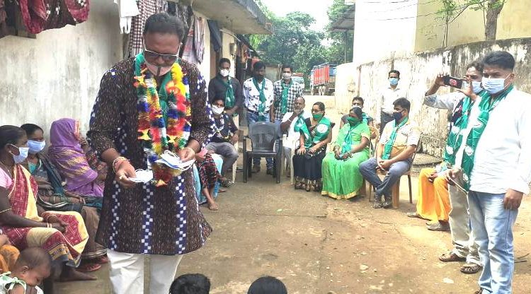 କଂଟାବାଂଜି, (ଗୁରୁଦୟାଲ ହଂସ) : ଆଜି ସକାଳୁ କଣ୍ଟାବାଞ୍ଜି ଏନଏସିର ବିଭିନ୍ନ ୱାର୍ଡ ମାନଙ୍କରେ ବିଜେଡି ତରଫରୁ ଜନସଚେତନ କାର୍ୟ୍ୟକ୍ରମ ଅବସରରେ ମାସ୍କ ବଣ୍ଟନ କରାଯିବା ସହିତ ମୁଖ୍ୟମନ୍ତ୍ରୀ ମନ୍ତ୍ରୀଙ୍କ ବାର୍ତ୍ତା ପ୍ରଚାର କରାଯାଇଛି । ଅଂଚଳର ବିଶିଷ୍ଟ ବିଜେଡ଼ି ନେତା ଅଜୟ ଦାସଙ୍କ ନେତୃତ୍ୱରେ ଅନୁଷ୍ଠିତ ଏହି କାର୍ୟ୍ୟକ୍ରମରେ ଶାନ୍ତନୁ ବିଭାରଙ୍କ ସହ ବହୁ ବିଜେଡ଼ି କର୍ମୀ ଉପସ୍ଥିତ ଥିଲେ ।