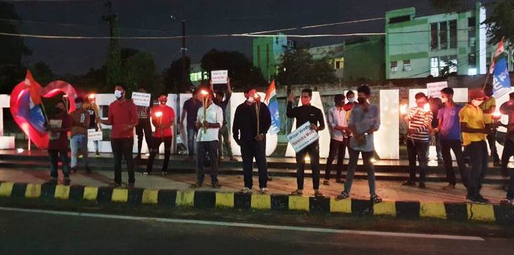 ଭୁବନେଶ୍ୱର, (ସୁଶାନ୍ତ ସାହୁ) : ଓଡିଶା ପ୍ରଦେଶ ଛାତ୍ର କଂଗ୍ରେସ ପକ୍ଷରୁ କେନ୍ଦ୍ର ସରକାର ଦ୍ୱାରା ଅଣା ଯାଇଥିବା କୃଷକ ବିରୋଧୀ ଆଇନକୁ ନେଇ ଗତ କାଲି ମଙ୍ଗଳବାର ଦିନ ସଂନ୍ଧ୍ୟାରେ ଭୁବନେଶ୍ୱର ଠାରେ ଛାତ୍ର ନେତା ଆଦିତ୍ୟ ପ୍ରୀତମ ଦାଶଙ୍କ ନେତୃତ୍ୱରେ ମଶାଲ ର୍ୟାଲି କରାଯାଇଥିଲା । ଏଥିରେ ସମ୍ଭବ ପଟ୍ଟନାୟକ, ସୌମ୍ୟରଂଜନ ଦାଶ, ପ୍ରତ୍ୟୁଶ ଦାଶଙ୍କ ସମେତ ଅନେକ ଛାତ୍ର ନେତା ଯୋଗ ଦେଇଥିଲେ ।