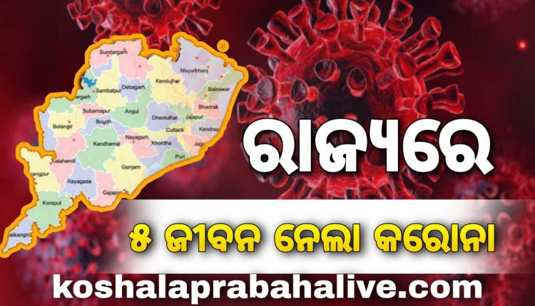 ଭୁବନେଶ୍ୱର, (କେପିଏନ୍ଏସ୍) : ଆଜି ରାଜ୍ୟରେ କରୋନାରେ ୫ ଜଣଙ୍କ ଜୀବନ ହାନୀ ଘଟିଥିବା ରାଜ୍ୟ ସ୍ୱାସ୍ଥ୍ୟ ଓ ପରିବାର କଲ୍ୟାଣ ବିଭାଗ ପକ୍ଷରୁ ସୂଚନା ଦିଆଯାଇଛି । ତେବେ ମୃତକମାନେ କେଉଁଝର ଜିଲ୍ଲାରୁ ୨ ଜଣ, ମୟୁରଭଂଜ ଜିଲ୍ଲା, ମାଲକାନ୍ଗିରି ଜିଲ୍ଲା ଓ ନୂଆପଡ଼ା ଜିଲ୍ଲାରୁ ଜଣେ ଲେଖାଏଁ ହୋଇଥିବା ସୂଚନା ରହିଛି ।