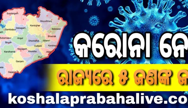 ଭୁବନେଶ୍ୱର, (କେପିଏନ୍ଏସ୍) : ଆଜି ରାଜ୍ୟରେ ୫ ଜଣଙ୍କ ଜୀବନ ଯାଇଛି କରୋନା ସଂକ୍ରମଣରେ ବୋଲି ରାଜ୍ୟ ସ୍ୱାସ୍ଥ୍ୟ ଓ ପରିବାର କଲ୍ୟାଣ ବିଭାଗ ପକ୍ଷରୁ କୁହାଯାଇଛି । ତେବେ ସୁନ୍ଦରଗଡ଼ ଜିଲ୍ଲା, କେଉଁଝର ଜିଲ୍ଲା, ମୟୁରଭଂଜ ଜିଲ୍ଲା, ବଲାଙ୍ଗିର ଜିଲ୍ଲା ଓ ଖୋର୍ଦ୍ଧା ଜିଲ୍ଲାରୁ ଜଣେ ଲେଖାଏଁ ମୃତ୍ୟୁବରଣ କରିଥିବା ସୂଚନାରେ କୁହାଯାଇଛି ।