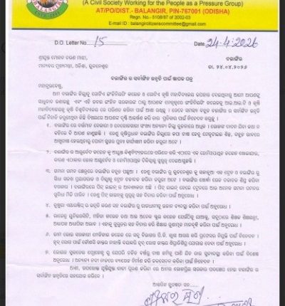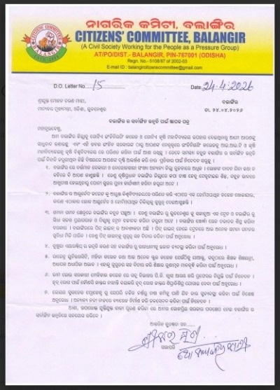 ମୁଖ୍ୟମନ୍ତ୍ରୀଙ୍କୁ ବଲାଙ୍ଗିର ନାଗରିକ କମିଟିର ଦାବୀପତ୍ର ପ୍ରଦାନ