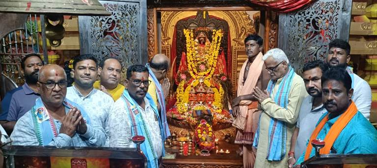 ବ୍ରହ୍ମପୁର, (କେ. ସତ୍ୟନାରାୟଣ ରେଡ୍ଡୀ) : ଷୋଡ଼ଶ ଦିନାତ୍ମକ ପୂଜା ପାର୍ବଣରେ ଷୋଡ଼ଶ ଉପଚାରରେ ଅଧିଷ୍ଠାତ୍ରୀ ଦେବୀ ପରମ ବୈଷ୍ଣବୀ ମା’ ରାମଚଣ୍ଡୀଙ୍କ ଶାରଦୀୟ ଦୁର୍ଗାପୂଜା ଉତ୍ସବ ବର୍ଣ୍ଣାଢ଼୍ୟ ସମାରୋହରେ ପାଳିତ ହୋଇଆସୁଛିଛି । ଅଗଣିତ ଭକ୍ତଙ୍କ ସମେତ ଦୈନିକ ସନ୍ଧ୍ୟାରେ ଗଣ୍ୟମାନ୍ୟ ବ୍ୟକ୍ତିଙ୍କ ଯୋଗଦାନ ଫଳରେ ପାର୍ବଣ ଉତ୍ସବଟି ଶୁଭ ମଣ୍ଡିତ ହୋଇଆସୁଅଛି । ଦେବୀଙ୍କ ଶାରଦୀୟ ପୂଜାର ଚତୁର୍ଦଶୀ ଦିବସର ଷୋଡ଼ଶ ଉପଚାରରେ ବିଧିବିଧାନ ପରମ୍ପରା, ଅଖଣ୍ଡ ଦୀପଯଜ୍ଞ ଏବଂ ମହା-ଆରତୀର ଦୃଶ୍ୟ ଦେଖିବାକୁ ଶହସ୍ରାଧିକ ଭକ୍ତଙ୍କ ସମାଗମ ଏକ ନିଆରା ଆଲୋଡନ ସୃଷ୍ଟି କରିଛି । ଚତୁର୍ଦଶୀ ଦିବସରେ ମା’ ରାମଚଣ୍ଡୀଙ୍କ ଗୌରୀ ବେଶ ଦର୍ଶନରେ ଭକ୍ତ ବିମୋହିତ ହୋଇଛନ୍ତି । ଶନିବାର ଓଡିଶା ବିଧାନ ସଭାର ପୂର୍ବତନ ଉପ-ବାଚସ୍ପତି ତଥା ରାମଚଣ୍ଡୀ ପରିବାରର ବରିଷ୍ଠ ଉପଦେଷ୍ଟା ରାମଚନ୍ଦ୍ର ପଣ୍ଡା ମା’ ରାମଚଣ୍ଡୀ ପୀଠକୁ ଆସି ମା’ଙ୍କ ଦର୍ଶନରେ କୃତାର୍ଥ ଲାଭ କରିଛନ୍ତି । ଅଗଣିତ ଭକ୍ତଜନ ଦେବୀଙ୍କ ପାର୍ବଣରେ ଯୋଗଦେଇ ବିଭୂକୃପା ଲାଭ କରି ନିଜକୁ ଧନ୍ୟ ମଣିଛନ୍ତି ।
