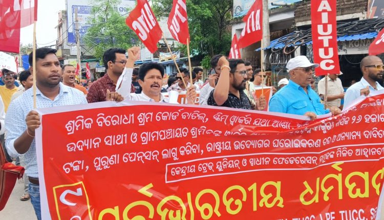 ବଲାଙ୍ଗିର, (ଦେବାଶିଷ ମିଶ୍ର) : କେନ୍ଦ୍ର ବିଜେପି ସରକାରଙ୍କ ଜନବିରୋଧି, ଶ୍ରମିକ, କୃଷକ ବିରୋଧି ନୀତି ବିରୁଦ୍ଧରେ ଦେଶର ୧୦ଟି କେନ୍ଦ୍ରିୟ ଶ୍ରମିକ ସଂଗଠନ ଓ ଫେଡେରେସନ ଆସୋସିଏସନ ଆହ୍ୱାନରେ ଦେଶ ବ୍ୟାପୀ ସାଧାରଣ ଧର୍ମଘଟ ଉପଲକ୍ଷେ ଆଜି ଏଆଟିୟୁସି, ଏଆଇୟୁଟିୟୁସି, ଆଇଏନ୍ଟିୟୁସି, ସିଟୁ ମିିଳିତ ମଂଚ ପକ୍ଷରୁ ଆଇନ ମହାବିଦ୍ୟାଳୟ ସମ୍ମୁଖରୁ ଏକ ବିରାଟ ର୍ୟାଲିରେ ଯାଇ ଭାଗରଥି ଛକ ମଧ୍ୟ ଦେଇ ଜିଲ୍ଲାପାଳଙ୍କ କାର୍ଯ୍ୟାଳୟ ସମ୍ମୁଖରେ ବିକ୍ଷୋଭ ପ୍ରଦର୍ଶନ କରାଯାଇଥିଲା । ଶ୍ରମିକ କର୍ମଚାରୀ ବିରୋଧି ୪ଟି ଶ୍ରମ କୋଡ ବାତିଲ, ଦୈନିକ କାର୍ଯ୍ୟ ଦିବସ ୮ ଘଣ୍ଟା କରିବା, ବିଦ୍ୟୁତ ସଂଶୋଧନ ବିଲ ୨୦୨୨ ପ୍ରତ୍ୟାହାର, ଏମ୍ଏସ୍ପିକୁ ଆଇନ ମାନ୍ୟତା, ସ୍କିମ ୱାର୍କର ଯଥା ଆଶା, ପାଳିକା ସହାୟିକା, ଅଙ୍ଗନୱାଡି କର୍ମୀ, ଉଦ୍ୟାନ ସାଥୀ ଓ ଗ୍ରାମ ପଂଚାୟତ ଶ୍ରମିକଙ୍କୁ ସରକାରୀ କର୍ମଚାରୀର ମାନ୍ୟତା ସର୍ବନିମ୍ନ ମଜୁରୀ ମାସିକ ୨୬ହଜାର ଟଙ୍କା, ପୁରୁଣା ପେନସନ ଲାଗୁ କରିବା, ରାଷ୍ଟ୍ରୀୟ ଉଦ୍ୟୋଗରେ ଘରୋଇ କରଣ ବନ୍ଦ, ଦରବୃଦ୍ଧି ବନ୍ଦ, କର୍ପୋରେଟ ଟିକସ ବୃଦ୍ଧି, ଜାତୀୟ ଶିକ୍ଷାନୀତି ୨୦୨୦ ବାତିଲ, ଭାରତୀୟ ଶ୍ରମ ସମ୍ମିଳନୀ ଅନୁଷ୍ଠିତ କରାଯାଇ ତୁରନ୍ତ ଶ୍ରମିକ ମାନଙ୍କ ସମସ୍ୟା ସମାଧାନ କରିବା ଆଦି ୧୭ ଦଫା ଦାବିରେ ବିକ୍ଷୋଭ ପ୍ରଦର୍ଶନ ସହ ଜିଲ୍ଲାପାଳଙ୍କ ଜରିଆରେ ପ୍ରଧାନମନ୍ତ୍ରୀଙ୍କୁ ପ୍ରଦାନ କରାଯାଇଥିଲା । ଆଜିର ଧର୍ମଘଟରେ ଆଇଏନ୍ଟିୟୁସି ଜିଲ୍ଲା ସଭାପତି କୃଷ୍ଣ ଚନ୍ଦ୍ର ସାହୁ, ଏଆଇଟିୟୁସି ଜିଲ୍ଲା ସଭାପତି ତୀର୍ଥ ପଧାନ, ଏଆଇୟୁଟିୟୁସି ଜିଲ୍ଲା ସଂଯୋଜକ ସୁନିଲ କୁମାର ଭୋଇ, ସିଟୁ ସଂଯୋଜକ ଅନିରୁଦ୍ଧ ମହାପାତ୍ର, ଆଇଏନ୍ଟିୟୁସି ଜିଲ୍ଲା ସଂପାଦକ ବିଦ୍ୟା ଚରଣ ସୁନା, ଏଆଇଟିୟୁସି ସହ ସଂପାଦକ ସାଏବୁ ନନ୍ଦ, ୟୁଟିୟୁବି ସଂଯୋଜକ ବିଭୁଦତ୍ତ ମିଶ୍ର, ନିଖିଳ ଓଡିଶା ଆଶା କର୍ମୀ ଜିଲ୍ଲା ସଂପାଦିକା ଓମି ଗୁପ୍ତା, ବଲାଙ୍ଗି ବ୍ଲକ ସଭାପତି ମମତା ବାଗ, ସଂପାଦିକା ବାସନ୍ତି ସେଠ, ଲୋଇସିଂହା ବ୍ଲକ ସଭାପତି ମାଧବି ବେହେରା, ସଂପାଦିକା କଲ୍ୟାଣି ସାହୁ, ବଲାଙ୍ଗିର ସହରାଂଚଳ ସଭାପତି ଦମୟନ୍ତି ମହାନନ୍ଦ, ସଂପାଦକ ପ୍ରଭାସିନି ରାଏ, ଉପସଭାପତି ସଂଜୁ ବାଗ, ନିଖିଳ ଓଡିଶା ମଧ୍ୟାହ୍ନ ଭୋଜନ ପାଚିକା ସହାୟିକା ସଂଘ ଜିଲ୍ଲା ସଂପାଦିକା ମାଧବୀ କଲତା, ସଭାପତି ପାଣ୍ଡବ ଭୋଇ, ଓଡିଶା ନିର୍ମାଣ ଶ୍ରମିକ ସଂଘ ଜିଲ୍ଲା ସଭାପତି ଗୋପାଳ ଭୋଇ, ଅର୍ଜୁନ ଖେର୍ସେଲ, କମଲ ଲୋଚନ ଭୋଇ, ଓଡିଶା ଫରେଷ୍ଟ ଉଡ୍ ନିର୍ମାଣ ସଂଘ ଜିଲ୍ଲା ସଭାପତି ଜଗବନ୍ଧୁ ବେହେରା, ବନିତା ପଟେଲ, ପୁରୁଷୋତ୍ତମ କର୍ମୀ, ନିଖିଳ ଓଡିଶା ଗ୍ରାମ ପଂଚାୟତ ରାଜ୍ୟ ସଂପାଦକ ବିଦୂର କୁମ୍ଭାର, ଜିଲ୍ଲା ସଂପାଦକ ଶ୍ୟାମ ପୁଟେଲ, ବନିତା ସାହୁ, ପଦ୍ମାବତି ସା, ମିନାକ୍ଷି ଜେନା, ପଦ୍ମାବତୀ ଥପା, ସଂଯୁକ୍ତା ବେହେରା, ମୁକ୍ତା ଉଦୁରକୁଲିଆ, ମହେନ୍ଦ୍ରୀ ସାହୁ, ସଂଯୁକ୍ତା କାଲସାଏ, ସୀତା ହୋତା, ସୁରୁଚି ମିଶ୍ର, ବିଳାସିନି ବାରିକ, ଆଶା ଦିପ, ସୁଜାତା ବିଶ୍ୱାଲ ସହ ଶତାଧିକ କର୍ମୀ ଉପସ୍ଥିତ ଥିଲେ ।