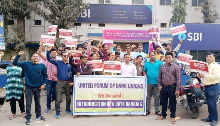 ସୁବର୍ଣ୍ଣପୁର, (ରାଜ କିଶୋର ତ୍ରିପାଠୀ) : ସର୍ବଭାରତୀୟ ସ୍ତରରେ ବ୍ୟାଙ୍କ କର୍ମଚାରୀ ଓ ବ୍ୟାଙ୍କ ଅଧିକାରୀ ମାନଙ୍କ ସପ୍ତାହକୁ ୫ ଦିନ କାର୍ଯ୍ୟ ଦିବସ କରିବା ଦାବିରେ ଧର୍ମଘଟ ସୋନପୁର ଜିଲ୍ଲାରେ ମଧ୍ୟ ଦେଖିବାକୁ ମିଳିଥିଲା । ଏଥି ଯୋଗୁଁ ମଙ୍ଗଳବାର ଦିନ ଜିଲ୍ଲାରେ ବ୍ୟାଙ୍କସେବା ଠପ୍ ରହିଥିଲା । ଜିଲ୍ଲାରେ କାର୍ଯ୍ୟରତ ବ୍ୟାଙ୍କ କର୍ମଚାରୀମାନେ ବିଭିନ୍ନ ବ୍ୟାଙ୍କ ସମ୍ମୁଖରେ ଧର୍ମଘଟ କରିଥିଲା ବେଳେ ୨୩ ତାରିଖରୁ ବିଭିନ୍ନ ଛୁଟି ଦିବସ ମିଶି ୨୭ ତାରିଖ ପର୍ଯ୍ୟନ୍ତ ଦିର୍ଘ ୫ ଦିନ ଧରି ବ୍ୟାଙ୍କ ସେବା ବନ୍ଦ ଯୋଗୁଁ ଗ୍ରାହକମାନେ ସେବା ନ ପାଇ ନାହିଁ ନ ଥିବା ହଇରାଣ ହୋଇଥିବା ଦେଖା ଯାଇଥିଲା । ଧର୍ମଘଟରେ ଏସବିଆଇ ଏସଏ ଭୁବନେଶ୍ଵର ଜୋନାଲ ସମ୍ପାଦକ ବଳଦେବ ମହାପାତ୍ର, ସଂଗଠନ ସମ୍ପାଦକ ବିଦେଶୀ ମେହେର, ଏନସିବିଇ ରିଜିଓନାଲ ସେକ୍ରେଟାରୀ ମୀନକେତନ ପ୍ରଧାନ, ଶୈଳେନ୍ଦ୍ର ସାହୁ, କୁମାର ରାଜହଂସ, ରାକେଶ ଅଗ୍ରୱାଲ, ସୁଶାନ୍ତ ସାହୁ, ଭବାନୀ ପାଣିଗ୍ରାହୀ, ସନ୍ତୋଷ ତ୍ରିପାଠୀ, ଅଜିତ କଣ୍ଠ, ଭୀଷ୍ମଦେବ ମେହେର, ବବଲୁ ମେହେର, ମିତ୍ରଭାନୁ ସାହୁ, ବିନାୟକ ଭୋଇ, ବିକାଶ ବେହେରା, ସୁଜିତ ମେହେର, ମନୋଜ ପଧାନ, ସନ୍ଦୀପ ହୋତା, ଚକ୍ର ମେହେର, ଶୁଭେନ୍ଦୁ ପଣ୍ଡା ପ୍ରମୁଖ ସାମିଲ ଥିଲେ ।