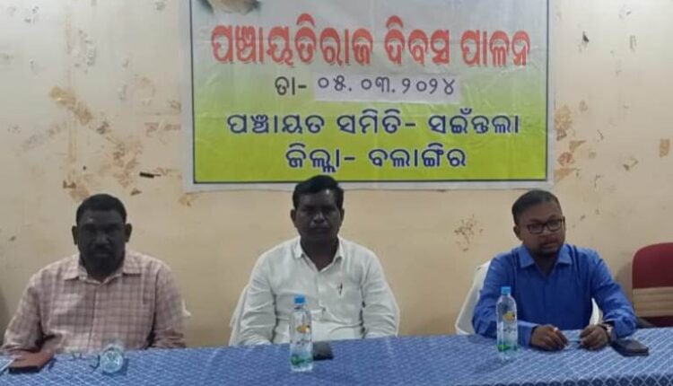 ସଇଁତଲା, (ପ୍ରମୋଦ ସେଲମା) : ବଲାଙ୍ଗିର ଜିଲ୍ଲା ସଇଁତଲା ସ୍ଥିତ ରାଜୀବ ଗାନ୍ଧୀ ସେବା କେନ୍ଦ୍ର ପରିସରରେ ପ୍ରବାଦ ପୁରୁଷ ବିଜୁବାବୁଙ୍କ ୧୦୮ତମ ଜନ୍ମ ଦିବସକୁ ପଞ୍ଚାୟତିରାଜ ଦିବସ ଭାବେ ପାଳନ କରାଯାଇଛି । ପ୍ରଥମେ ସ୍ୱର୍ଗତ ବିଜୁ ପଟ୍ଟନାୟକଙ୍କ ଫଟୋ ଚିତ୍ରରେ ଦୀପ ପ୍ରଜ୍ଜଳନ କରି ପୁଷ୍ପମାଲ୍ୟ ଅର୍ପଣ କରିଥିଲେ । ସଇଁତଲା ବିଡ଼ିଓ ବିନୟ କୁମାର ଭୋଇଙ୍କ ଅଧ୍ୟକ୍ଷତାରେ ଅନୁଷ୍ଠିତ ବୈଠକରେ ବ୍ଲକ ଉପାଧ୍ୟକ୍ଷ ଗୁଣସାଗର ମାଝୀ ମୁଖ୍ୟ ଅତିଥି ଭାବେ ଯୋଗଦାନ କରି କହିଲେ ଯେ, ପ୍ରବାଦ ପୁରୁଷ ବିଜୁ ପଟ୍ଟନାୟକ ଜଣେ ଓଡିଶାର ବିକାଶ ପାଇଁ ତାଙ୍କର ଗୁରୁତ୍ୱପୂର୍ଣ୍ଣ ଭୂମିକା ରହିଥିଲା । ଏପରିକି ରାଜନୈତିକ ଜୀବନରେ ଅନେକ ଘାତ ପ୍ରତିଘାତ ଆସିଥିଲେ ମଧ୍ୟ ସେ ସବୁବେଳେ ଓଡିଶା ବିକାଶ ଚିନ୍ତା କରୁଥୁଲେ ବୋଲି ଶ୍ରୀ ମାଝୀ ପ୍ରକାଶ କରିଥିଲେ । ଏଥିରେ ଅନ୍ୟତମ ସମ୍ମାନିତ ଅତିଥି ଭାବରେ ଅତିରିକ୍ତ ଗୋଷ୍ଠୀ ଉନ୍ନୟନ ଅଧିକାରୀ ଉପେନ୍ଦ୍ର ମାଝୀ ପ୍ରମୁଖ ଉପସ୍ଥିତ ଥିଲେ । ଏହି ସମୟରେ ସରପଞ୍ଚ ନରେନ୍ଦ୍ର କଲେତ, ସମିତି ସଭ୍ୟ ନବୀନ ରଣା, ରାକେଶ ତ୍ରିପାଠୀ, ଜିପିଇଇ ସୁଷମା ମାଝୀ, ସିଓ ସୁଦର୍ଶନ ନନ୍ଦ, ତରୁଣକାନ୍ତ ଧରୁଆ, ବିଷ୍ଣୁପ୍ରିୟା ମାଝୀ, ବନଜା ବାସିନୀ ଦାସ, ଭାନୁ ପ୍ରତାପ ଭୋଇ, ଇତିଶ୍ରୀ ଦେହୁରୀ, ସଂଗ୍ରାମ ମିଶ୍ରଙ୍କ ସମେତ ସମସ୍ତ ବ୍ଲକ କର୍ମଚାରୀମାନେ ଉପସ୍ଥିତ ଥିଲେ ।