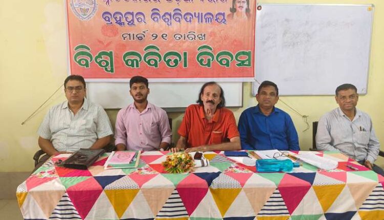 ବ୍ରହ୍ମପୁର, (କେ. ସତ୍ୟନାରାୟଣ ରେଡ୍ଡୀ) : ଗୁରୁବାର ମାର୍ଚ୍ଚ ୨୧ ତାରିଖ ବିଶ୍ଵ କବିତା ଦିବସ ଅବସରରେ ବ୍ରହ୍ମପୁର ବିଶ୍ଵବିଦ୍ୟାଳୟର ସ୍ନାତକୋତ୍ତର ଓଡ଼ିଆ ବିଭାଗ ସୌଜନ୍ୟରେ ବିଶ୍ଵ କବିତା ଦିବସ ବର୍ଣ୍ଣାଢ଼୍ୟ ସମାରୋହରେ ପାଳିତ ହୋଇଯାଇଛି । ଏହି ଅବସରରେ ଆଲୋଚନା ସଭା ଏବଂ କବିତା ପାଠ ଆୟୋଜିତ ହୋଇଥିଲା । ବ୍ରହ୍ମପୁର ସହର ତଥା ଓଡ଼ିଶାର ଜଣେ ଜଣାଶୁଣା କବି ଏବଂ ବ୍ରହ୍ମପୁର ବିଶ୍ଵବିଦ୍ୟାଳୟ ସ୍ନାତକୋତ୍ତର ଓଡ଼ିଆ ବିଭାଗର ପ୍ରଥମ ବର୍ଷର ଛାତ୍ର ଭାବେ ପରିଚିତ ଡକ୍ଟର କୈଳାସ ଚନ୍ଦ୍ର ତ୍ରିପାଠୀ ଏହି ଅବସରରେ ମୁଖ୍ୟ ଆଲୋଚକ ଭାବେ ଯୋଗଦେଇ ବିଶ୍ୱ କବିତା ଦିବସର ମହତ୍ତ୍ୱ ପ୍ରତିପାଦନ କରିଥିଲେ ।