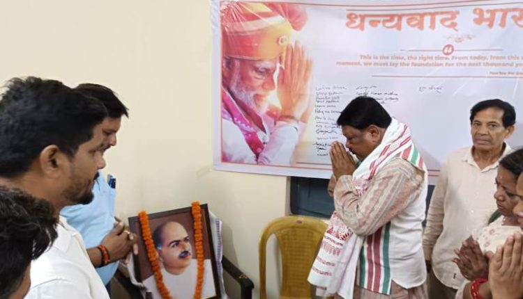 ରାଉରକେଲା, (ସସ୍ମିତା ପ୍ରଧାନ) : ଭାରତୀୟ ଜନସଂଘର କର୍ଣ୍ଣଧାର ତଥା ପ୍ରତିଷ୍ଠାତା ଡ. ଶ୍ୟାମାପ୍ରସାଦ ମୁଖାର୍ଜୀଙ୍କ ଜନ୍ମତିଥିକୁ ସମଗ୍ର ଦେଶରେ ପାଳନ କରାଯାଇଛି । ଏହି ଅବସରରେ ବିଜେପି ଜିଲ୍ଲା କାର୍ଯ୍ୟାଳୟରେ ଜିଲ୍ଲା ସଭାନେତ୍ରୀ ଲତିକା ପଟ୍ଟନାୟକଙ୍କ ଅଧ୍ୟକ୍ଷତାରେ ଜନ୍ମଦିବସ ପାଳନ କରାଯାଇଥିଲା । ଡ. ମୁଖାର୍ଜୀଙ୍କ ଫଟୋ ଚିତ୍ରରେ କେନ୍ଦ୍ର ଆଦିବାସୀ ବ୍ୟାପାର ମନ୍ତ୍ରୀ ଜୁଏଲ୍ ଓରାମ, ରଘୁନାଥପଲ୍ଲୀ ବିଧାୟକ ଦୁର୍ଗାଚରଣ ତନ୍ତୀ, ପୂର୍ବତନ କେନ୍ଦ୍ରମନ୍ତ୍ରୀ ଦିଲ୍ଲୀପ ରାୟ, ରାଜ୍ୟ ସାଧାରଣ ସମ୍ପାଦିକା ପୂର୍ଣ୍ଣିମା କେରକେଟା ଓ ବିଜେପିର ଉପସ୍ଥିତ ନେତୃମଣ୍ଡଳୀ ପୁଷ୍ପାଞ୍ଜଳି ଅର୍ପଣ କରି ଥିଲେ । ଶ୍ରୀ ଓରାମ, ଡକ୍ଟର ଶ୍ୟାମାପ୍ରାସାଦ ମୁଖାର୍ଜୀଙ୍କ ଶୃତି ଚାଳନା କରି କହିଲେ ଯେ, ସେ ଜଣେ ରାଷ୍ଟ୍ରବାଦୀ, ମହାନ ପୁରୁଷ, ସ୍ଵଷ୍ଟ ରାଜନୀତିଜ୍ଞ, ବିଶିଷ୍ଟ ଶିକ୍ଷାବିତ୍, ଭାରତ ଜନନୀର ବରପୁତ୍ର ଯାହାଙ୍କ ଜନ୍ମ ଠାରୁ ଆରମ୍ଭ କରି ଶେଷ ନିଃଶ୍ୱାସ ତ୍ୟାଗ କରିବା ପର୍ଯ୍ୟନ୍ତ ଏକ ବୈପ୍ଲବିକ ଓ କ୍ରାନ୍ତିକାରୀ ପରିବର୍ତ୍ତନ ଆଣିବାକୁ ସତତ୍ ଚେଷ୍ଟିତ ଥିଲେ, ଯାହା ଭାରତ ଇତିହାସରେ ସ୍ମରଣୀୟ ହୋଇ ରହିଛି । ଜାମ୍ମୁ-କାଶ୍ମୀର ରାଜ୍ୟକୁ ସ୍ଵତନ୍ତ୍ର ପାହ୍ୟା ପ୍ରଦାନକୁ ସେ ବିରୋଧ କରିଥିଲେ କାରଣ ଏହାଦ୍ୱାରା ଦୁଇ ପ୍ରଧାନ, ଦୁଇ ବିଧାନ, ଦୁଇ ନିଶାନ ଅଖଣ୍ଡ ଭାରତ ପାଇଁ ବିପଦ ସୃଷ୍ଠି କରିବ । ଏହାକୁ ସେ ବିରୋଧ କରି ଜାମ୍ମୁ-କାଶ୍ମୀର ଅଭିମୁଖେ ଯାତ୍ରା କରି ଗିରଫ ହୋଇଥିଲେ ଓ ଜେଲ୍ରେ ଥିବା ବେଳେ ତାଙ୍କର ଅକସ୍ମାତ ସନ୍ଦେହଜନକ ମୃତ୍ୟୁ ହୋଇଥିଲା ଯାହା ପୂର୍ବ କଳ୍ପିତ ଷଡ଼ଯନ୍ତ୍ର ଥିଲାବୋଲି ପ୍ରଚାର ହୋଇଥିଲା । ତାଙ୍କର ସ୍ୱପ୍ନକୁ ପ୍ରଧାନମନ୍ତ୍ରୀ ନରେନ୍ଦ୍ର ମୋଦି ଆଜି ସାକାର କରିବା ସହ ୩୭୦ ଧାରା ଉଚ୍ଛେଦ କରି ଜାମ୍ମୁ-କାଶ୍ମୀରକୁ ଭାରତର ଅବିଚ୍ଛେଦ୍ୟ ଅଙ୍ଗ କରିଛନ୍ତି । ଏଣୁ ଆଜି ଆମେ ଶପଥ ନେବା ତାଙ୍କର ବିଚାର, ତ୍ୟାଗ, ବଳିଦାନ ଓ ଆଦର୍ଶରେ ଅନୁପ୍ରାଣୀତ ହୋଇ କାର୍ଯ୍ୟ କରିବା । ଆଜିର ଏହି କାର୍ଯ୍ୟକ୍ରମରେ ଜିଲ୍ଲା ସାଧାରଣ ସମ୍ପାଦକ ସୁବ୍ରତ ପଟ୍ଟନାୟକ ଓ ଶଶାଙ୍କ ଜେନା ପ୍ରମୁଖଙ୍କ ସମେତ ବହୁ ବରିଷ୍ଠ ନେତା ଯୋଗ ଦେଇଥିଲେ ।