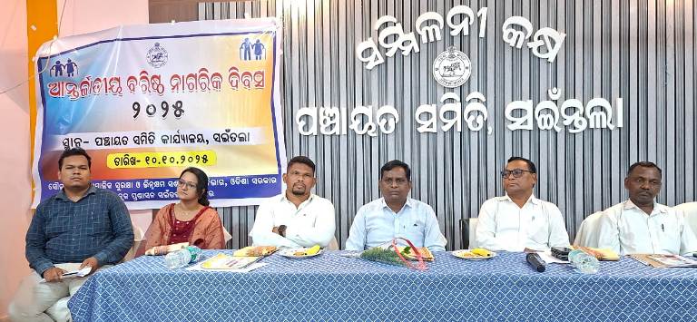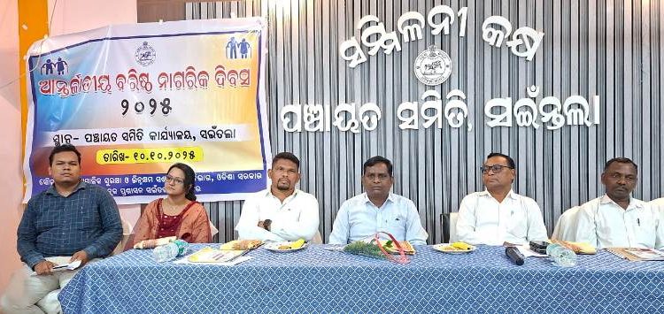 ସଇଁତଲା, (ଖୁସିରାଣୀ ସାହୁ) : ସଇଁତଲା ବ୍ଲକ କାର୍ଯ୍ୟାଳୟ ପରିସରରେ ଆନ୍ତର୍ଜାତୀୟ ବରିଷ୍ଠ ନାଗରିକ ଦିବସ ପାଳିତ ହୋଇଯାଇଛି । ବିଡ଼ିଓ ପୁରୁଷୋତ୍ତମ ମିର୍ଦ୍ଧାଙ୍କ ସଭାପତିତ୍ୱରେ ଅନୁଷ୍ଠିତ କାର୍ଯ୍ୟକ୍ରମରେ ବ୍ଲକ ଉପାଧ୍ୟକ୍ଷ ଗୁଣସାଗର ମାଝୀ ପ୍ରମୁଖ ଯୋଗଦେଇ ପ୍ରଥମେ ନାଗରିକ ମାନଙ୍କୁ ଉପଢୌକନ ଦେଇ ସମ୍ବର୍ଦ୍ଧିତ କରିବା ସହ ବରିଷ୍ଠ ନାଗରିକ ମାନଙ୍କୁ ନିଜ ହାତମୁଠା ଟାଣ କଲେ ହିଁ ଘରର ସଦସ୍ୟମାନେ ବରିଷ୍ଠ ମାନଙ୍କର ଯତ୍ନ ନେବେ ବୋଲି ସଚେତନ କରିଥିଲେ । ଏହି କାର୍ଯ୍ୟକ୍ରମରେ ବିଭିନ୍ନ ପଂଚାୟତର ବରିଷ୍ଠ ସଦସ୍ୟ ସମେତ ଅଙ୍ଗନୱାଡି ଓ ବ୍ଲକ କର୍ମଚାରୀମାନେ ଉପସ୍ଥିତ ଥିଲେ ।