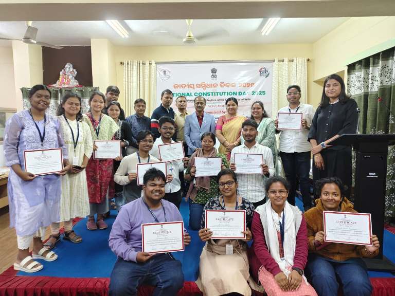 ଭୁବନେଶ୍ୱର, (ପିଆଇବି) : କେନ୍ଦ୍ରୀୟ ଯୋଗାଯୋଗ କାର୍ଯ୍ୟାଳୟ (ସିବିସି) ଏବଂ ପତ୍ର ସୂଚନା କାର୍ଯ୍ୟାଳୟ (ପିଆଇବି), ଭୁବନେଶ୍ୱର ପକ୍ଷରୁ ଆଜି, ଜାତୀୟ ସମ୍ବିଧାନ ଦିବସ ୨୦୨୫ ପାଳନ ଉପଲକ୍ଷେ ଏକ କାର୍ଯ୍ୟକ୍ରମ ଆୟୋଜନ ହୋଇଥିଲା, ଯାହାର ଉଦ୍ଦେଶ୍ୟ ଥିଲା ସାମ୍ବିଧାନିକ ସାକ୍ଷରତାକୁ ପ୍ରୋତ୍ସାହିତ କରିବା ଏବଂ ଭାରତର ସମ୍ବିଧାନରେ ପ୍ରଦତ୍ତ ମୂଲ୍ୟବୋଧକୁ ପୁନଃନିର୍ମାଣ କରିବା ।