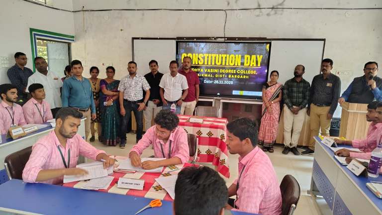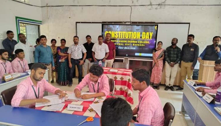 ପଦ୍ମପୁର, (ନିରୋଜ କୁମାର ପାଣୀ) : ପଦ୍ମପୁର ଉପଖଣ୍ଡ ପାଇକମାଲ ବିନ୍ଧ୍ୟବାସିନୀ ସ୍ନାତକ ମହା ବିଦ୍ୟାଳୟରେ ଅଧ୍ୟକ୍ଷ ଲୋହିତ କୁମାର ବାରିକଙ୍କ ଅଧ୍ୟକ୍ଷତାରେ ସମ୍ବିଧାନ ଦିବସ ପାଳିତ ହୋଇଯାଇଛି । ଉକ୍ତ ସଭାରେ ଅଧ୍ୟକ୍ଷ ଶ୍ରୀ ବାରିକ ଭାରତୀୟ ସମ୍ବିଧାନ ସଂପର୍କରେ ଛାତ୍ରଛାତ୍ରୀମାନଙ୍କୁ ଅବଗତ କରିଥିଲେ । ଛାତ୍ରଛାତ୍ରୀ, କର୍ମଚାରୀ ସମସ୍ତେ ମିଶି ସାମୂହିକ ପ୍ରସ୍ତାବନା ପଠନ କରିଥିଲେ । ଏହି ଅବସରରେ ରାଜନୀତି ବିଜ୍ଞାନ ବିଭାଗର ଛାତ୍ରଛାତ୍ରୀ “ୟୁଥ୍ ପାର୍ଲିଆମେଣ୍ଟ” ମାଧ୍ୟମର ଛାୟା ପାର୍ଲିଆମେଣ୍ଟ ଗଠନ କରି ଅଭିନୟ ମାଧ୍ୟମରେ ଗଣତନ୍ତ୍ରର ଶକ୍ତି ତଥା ତାର ପ୍ରଭାବ ସଂପର୍କରେ ଅବଗତ କରିଥିଲେ । ଅଧ୍ୟାପକ ପ୍ରଭାତ କୁମାର ବିଶ୍ୱାଳ, ପ୍ରଦୀପ୍ତ କୁମାର ସାହୁ, ପ୍ରଦୀପ କୁମାର ଦେୱାନ, ମୀନା କୁମାରୀ ସାହୁ, ଦେବରାଜ ସାହୁ ଅଧ୍ୟାପକ, ଅଧ୍ୟାପିକା, କର୍ମଚାରୀ ଉପସ୍ଥିତ ରହି ଛାତ୍ରଛାତ୍ରୀଙ୍କୁ ଉତ୍ସାହିତ କରିଥିଲେ । ସଭା ଶେଷରେ ଅଧ୍ୟାପିକା ପୁଷ୍ପାମଞ୍ଜରୀ ପ୍ରଧାନ ଧନ୍ୟବାଦ ଅର୍ପଣ କରିଥିଲେ ।