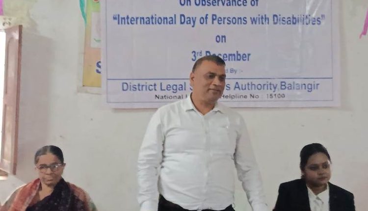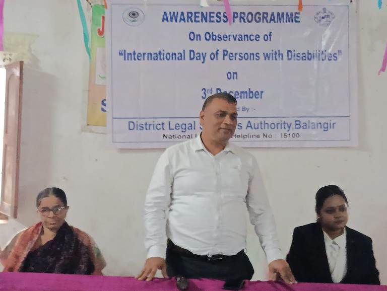 ଦେଓଗାଁ, (ମନୀଷ କୁମାର ସାହୁ) : ବଲାଙ୍ଗିର ଜିଲ୍ଲା ଆଇନ ସେବା ପ୍ରାଧିକରଣର ଆନୁକୂଲ୍ୟରେ ଦେଓଗାଁ ବ୍ଲକ ସାଲେପାଲି ସ୍ଥିତ ଜଗତର ବନ୍ଧୁ ବିଶ୍ୱଭାରତୀ ଶିକ୍ଷା ନିକେତନରେ ଆନ୍ତର୍ଜାତୀୟ ଦିବ୍ୟାଙ୍ଗ ଦିବସ ପାଳନ ହୋଇଯାଇଛି । ଏହି କାର୍ଯ୍ୟକ୍ରମରେ ଆଇନସେବା ପ୍ରାଧିକରଣର ସମ୍ପାଦକ ପବିତ୍ରାନନ୍ଦ ପ୍ରଧାନ ମୁଖ୍ୟ ଅତିଥି ଭାବେ ଯୋଗ ଦେଇଥିବା ବେଳେ ପ୍ରବେସନର୍ ରାଜଶ୍ରୀ ପ୍ରିୟଦର୍ଶିନୀ, ସମ୍ପାଦକ ବିନୋଦିନୀ ମେହେର, ଶିକ୍ଷକମାନେ ସମ୍ମାନିତ ଅତିଥି ଭାବରେ ଯୋଗଦେଇଥିଲେ । ଅତିଥି ମାନେ ଆନ୍ତର୍ଜାତୀୟ ଦିବ୍ୟାଙ୍ଗ ଦିବସର ତାତ୍ପର୍ଯ୍ୟ ବିଷୟରେ ଛାତ୍ରଛାତ୍ରୀମାନଙ୍କୁ ବୁଝାଇଥିଲେ । ସଙ୍ଗୀତ ଶିକ୍ଷକ ଶିବ ପ୍ରସାଦ ସାହୁ କାର୍ଯ୍ୟକ୍ରମ ପରିଚାଳନା କରିଥିବା ବେଳେ ତିଳୋତ୍ତମା ସ୍ଵାଇଁ ଧନ୍ୟବାଦ୍ ଅର୍ପଣ କରିଥିଲେ ।