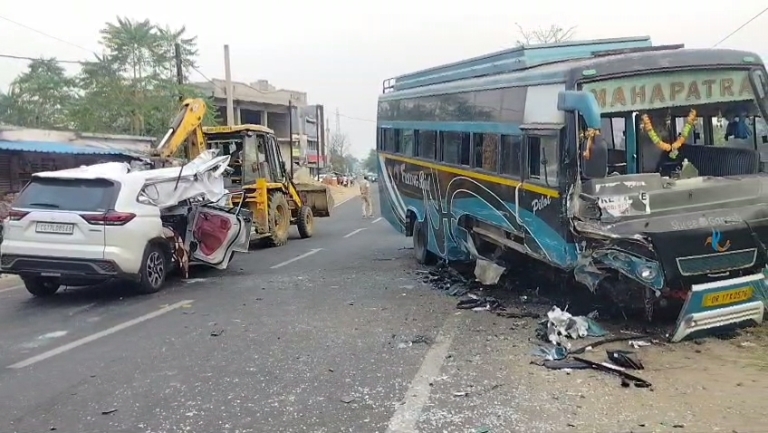 କାର ଓ ବସ ମଧ୍ୟରେ ଭୟାବହ ଦୁର୍ଘଟଣା : ୧ ମୃତ, ୪ ଗୁରୁତର