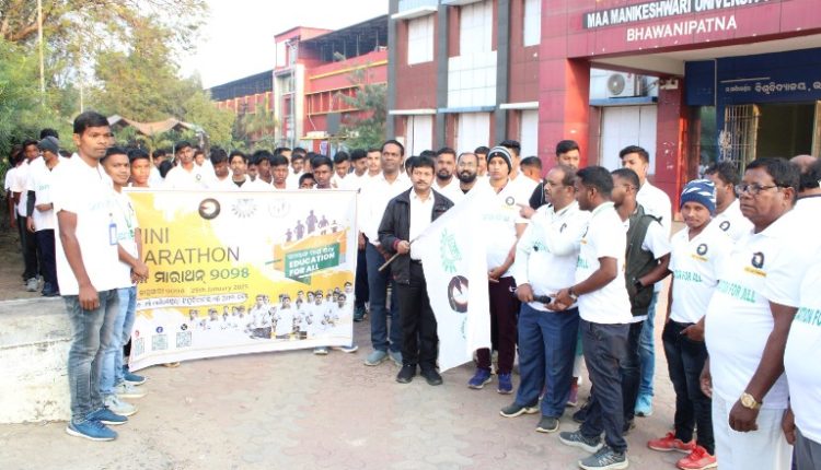 କଳାହାଣ୍ଡି, (ଶୁଭେନ୍ଦୁ କୁମାର ପଣ୍ଡା) : ସମସ୍ତଙ୍କ ପାଇଁ ଶିକ୍ଷା ଉଦ୍ଦେଶ୍ୟରେ ଆଜି ଭବାନୀପାଟଣାରେ ଗଣଦୌଡ ଅନୁଷ୍ଠିତ ହୋଇଯାଇଛି । ମା’ ମାଣିକେଶ୍ୱରୀ ବିଶ୍ୱ ବିଦ୍ୟାଳୟରୁ ଏହି ଗଣଦୌଡ ଅମଲା ଭବନ ଯାଏ ପ୍ରାୟ ତିନି କିଲୋମିଟର ହୋଇଥିଲା । ଅତିରିକ୍ତ ଜିଲ୍ଲାପାଳ ତନ୍ମୟ କୁମାର ଦରୱାନ ମୁଖ୍ୟ ଅତିଥୀ ଭାବେ ଯୋଗଦେଇ ପତାକା ପ୍ରଦର୍ଶନ କରି ଶୁଭାରମ୍ଭ କରିଥିଲେ । ବିଭିନ୍ନ ଵିଦ୍ୟାଳୟର ୨୦୦ରୁ ଅଧିକ ଛାତ୍ର ଏହି ଗଣଦୌଡରେ ଭାଗ ନେଇଥିଲେ । ବିଶ୍ୱ ବିଦ୍ୟାଳୟ କୁଳପତି ପିତାମ୍ବର ଭୋଇ, ଯୋଜନା ନିର୍ଦ୍ଦେଶକ ଶ୍ରୀକାନ୍ତ ଦଳେଇ, ବାଲ ଗୋପାଲ ସେବା ନିକେତନ ସମ୍ପାଦକ ହେମନ୍ତ କୁମାର ମୁଣ୍ଡ, କିସ୍ ଉପ କାର୍ଯ୍ୟ ନିର୍ବାହୀ ଦୁଷ୍ମନ୍ତ ପଧାନ ପ୍ରମୁଖ ଯୋଗ ଦେଇଥିଲେ ।