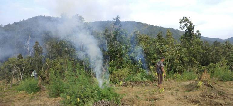 ବାଲିଗୁଡା, (ସଞ୍ଜୟ କୁମାର ପାଣିଗ୍ରାହୀ) : କନ୍ଧମାଳ ଜିଲ୍ଲା ବାଲିଗୁଡା ଉପଖଣ୍ଡ ଅନ୍ତର୍ଗତ କ. ନୂଆଗାଁ ପୁଲିସ ଓ ବାଲିଗୁଡା ଅବକାରୀ ବିଭାଗର ମିଳିତ ଚଢ଼ଉ କରି ୪୭ ଏକର ଗଞ୍ଜେଇ ଗଛକୁ ପୋଡ଼ି ନଷ୍ଟ କରିଛି । ପ୍ରକାଶ ଯେ, କ.ନୂଆଗାଁ ବ୍ଲକ କୁଡୁତୁଲି ପଞ୍ଚାୟତ ଡକାର ଗାଁ, ବୁଡ଼ାବାଲି ଜଙ୍ଗଲରେ ବେଆଇନ ଭାବେ ଚାଷ କରାଯାଇଥିବା ୪୭ ଏକର ଜମିରେ ଗଞ୍ଜେଇ ଚାଷ କରାଯାଇଥିବା ବିଷୟ କୌଣସି ସୂତ୍ରରୁ ଖବର ପାଇ ଅଚାନକ ଚଢ଼ାଉ କରି ଉକ୍ତ ଗଞ୍ଜେଇ ଗଛକୁ ଜାଳି ପୋଡ଼ି ନଷ୍ଟ କରିଥିଲେ । ଏହି ଗଞ୍ଜେଇ ଗଛ କଟା ଅଭିଯାନରେ କ. ନୂଆଗାଁ ଥାନା ଅଧିକାରୀ ଅଶୋକ କୁମାର ହାଁସଦା, ଏସଆଇ ଅଶୋକ କୁମାର ତ୍ରିପାଠି, ସୁରେନ୍ଦ୍ର ରାଜହଂସ, ଅବକାରୀ ଏସ ଆଇ ସୁମିତ୍ରା ଦଳାଇଙ୍କ ସମେତ ସମସ୍ତ ପୋଲିସ ଓ ଅବକାରୀ ବିଭାଗ କର୍ମଚାରୀ ସାମିଲ ଥିଲେ ।