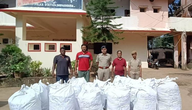 ଜଙ୍ଗଲ ବୁଦାମୂଳରୁ ମିଳିଲା ୪୧୪ କିଲୋ ଗଞ୍ଜେଇ : ବାହାର ରାଜ୍ୟକୁ ଚୋରାଚାଲାଣ ପାଇଁ ଗଚ୍ଛିତ ଥିବା ବେଳେ ବୈପାରିଗୁଡା ପୋଲିସର ଚଢାଉ
