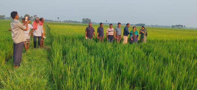 ଡେଲାଙ୍ଗ, (ଦିଲ୍ଲୀପ କୁମାର ଧାଉଡ଼ିଆ) : ପୁରୀ ଜିଲ୍ଲା ଡେଲାଙ୍ଗ ବ୍ଲକର ବିଭିନ୍ନ ପଂଚାୟତରେ ବ୍ୟାପକ ଧାନ ଫସଲ ନଷ୍ଟ କରିଥିବା କବକ ପତ୍ରପୋଡା ରୋଗାକ୍ରାନ୍ତ ଧାନ କ୍ଷେତରେ ବୁଧବାର ସାକ୍ଷୀଗୋପାଳ କୃଷି ବିଜ୍ଞାନ କେନ୍ଦ୍ରର ବରିଷ୍ଠ ବୈଜ୍ଞାନିକ ତଥା ମୁଖ୍ୟ ଡ. ସୂର୍ଯ୍ୟନାରାୟଣ ମିଶ୍ର, ବୈଜ୍ଞାନିକ ଡ. ସ୍ମୃତିମୟୀ ମିଶ୍ର କ୍ଷେତ୍ରୀୟ ଅନୁଧ୍ୟାନ କରିଛନ୍ତି । ଡ. ମିଶ୍ରଙ୍କ ସହ ଡେଲାଙ୍ଗ ବ୍ଲକ କୃଷି ଅଧିକାରୀ ମାନସୀ ମଧୁଭାଷିନୀ ପଶାୟତ, ସହକାରୀ କୃଷି ଅଧିକାରୀ ମନୋଜ କୁମାର ବାରିକ, ବୈଷୟିକ ପରିଚାଳକ ଜ୍ଞାନରଞ୍ଜନ ହରିଚନ୍ଦନ ପ୍ରମୁଖ ସର୍ବାଧିକ କ୍ଷତିଗ୍ରସ୍ତ ମୁନିନ୍ଦା ପଂଚାୟତ ଧାନ କ୍ଷେତର ସ୍ଥିତି ଅନୁଧ୍ୟାନ କରିବା ସହ ପ୍ରତିକାର ପରାମର୍ଶ ଦେଇଛନ୍ତି । ନୀଳାଚଳ କୃଷକ ମହାସଂଘର ମୁନିନ୍ଦା ପଂଚାୟତ ସଭାପତି ଉଲ୍ଲାସ ଚନ୍ଦ୍ର ନାୟକ, ପଂଚାୟତ ପ୍ରମୁଖ ଅଶୋକ ପ୍ରଧାନ ଓ଼ଗେର ଚାଷୀମାନେ ସେମାନଙ୍କ ଦୁଃଖ କୃଷି ବୈଜ୍ଞାନିକଙ୍କୁ ଅବଗତ କରାଇଥିଲେ । ରୋଗ ପୋକ ନିୟନ୍ତ୍ରଣ ପାଇଁ ଏକ ଚାଷୀ ସଚେତନତା କର୍ମଶାଳା ମୁନିନ୍ଦା ଠାରେ ଶନିବାର କରାଯିବାକୁ ଡ. ମିଶ୍ର ପରାମର୍ଶ ଦେଇଛନ୍ତି ।