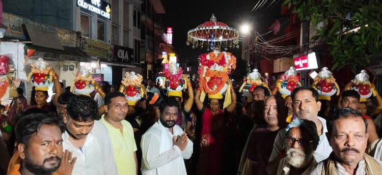 ବ୍ରହ୍ମପୁର, (କେ. ସତ୍ୟନାରାୟଣ ରେଡ୍ଡୀ) : ଆରାଧ୍ୟ ଦେବୀ ମା’ ରାମାୟଣାମ୍ମାଙ୍କ ପ୍ରଥମ ସନ୍ଧ୍ୟାର ଘଟଯାତ୍ରା ସମାହିତ ହୋଇଯାଇଛି । ଛତ୍ରପୁର ମେନ୍ରୋଡ଼ ସ୍ଥିତ ରିକାପଲ୍ଲୀ ଅଭିମୁଖେ ମା’ଙ୍କର ଆଗମନ ହୋଇଛି । ଛତ୍ରପୁର ମେନ୍ରୋଡ଼ ସ୍ଥିତ ଅଧୁନା ଷ୍ଟାଇଲ ବଜାର ସାମ୍ନାରେ ତତ୍କାଳୀନ ଜଣେ ବିଖ୍ୟାତ ବ୍ୟବସାୟୀ ସ୍ୱର୍ଗୀୟ ଡବ୍ଲୁ. କାମରାଜୁ ଅବସ୍ଥାନ କରୁଥିଲେ । ସେ ମା’ଙ୍କର ଅତିପ୍ରିୟ ଭକ୍ତ ଥିଲେ । ଏହି ସେହି ସମୟରେ ଠାକୁରାଣୀ ଯାତ୍ରାର ପ୍ରାରମ୍ଭରେ ସେହି ବ୍ୟକ୍ତି ମୁଖ୍ୟ-ପୃଷ୍ଠପୋଷକ ଥିଲେ । ତାଙ୍କରି ସ୍ମୃତିରେ ପ୍ରତିବର୍ଷ ପ୍ରଥମ ଦିବସରେ ତାଙ୍କରି ବାସଭବନକୁ ମା’ଙ୍କର ଆଗମନ ହୋଇଥାଏ । ସେହି ପ୍ରଥାନୁସାରେ ବୁଧବାର ସନ୍ଧ୍ୟାରେ ଡବ୍ଲୁ. କାମରାଜୁଙ୍କ ଉତ୍ତରଦାୟୀ ପରିବାର ଉପସ୍ଥିତ ହୋଇ ଦେବୀଙ୍କ ଭୋଗ-ରାଗ ଓ ବନ୍ଦାପନା ବ୍ୟବସ୍ଥାପନା କରିଥିଲେ । ସେଠାରେ ମାଆ ସାନ୍ତାଆଣୀ ରାଜଭୋଗ ଖାଇ ଦେବୀ ସେଠାରୁ ପ୍ରତ୍ୟାବର୍ତ୍ତନ କରିଛନ୍ତି । ପ୍ରତିଦିନ ସନ୍ଧ୍ୟାରେ ଦେବୀଙ୍କ ଘଟଯାତ୍ରା ଖୁବ୍ ଉତ୍ସବ ମୁଖର ହୋଇ ଉଠିଥାଏ । ବୁଧବାର ସନ୍ଧ୍ୟାରେ ବର୍ଣ୍ଣାଢ଼୍ୟ ସମାରୋହରେ ଦେବୀଙ୍କ ଘଟ ଯାତ୍ରାରେ ଅଗଣିତ ଭକ୍ତ ଦେବୀ ଦଶଭୁଜା ମହାମାୟୀଙ୍କ ଅପରୂପ ସୌନ୍ଦର୍ଯ୍ୟ ବେଶ ଦେଖି ଦର୍ଶକ ବିମୋହିତ ହୋଇଥିଲେ ।