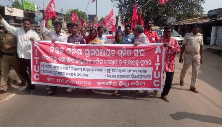 ନିଖିଳ ଓଡିଶା ଗ୍ରାମ ପଂଚାୟତ ଶ୍ରମିକ ସଂଘ ତରଫରୁ ଜିଲ୍ଲାପାଳ ଅଫିସ ଘେରାଓ