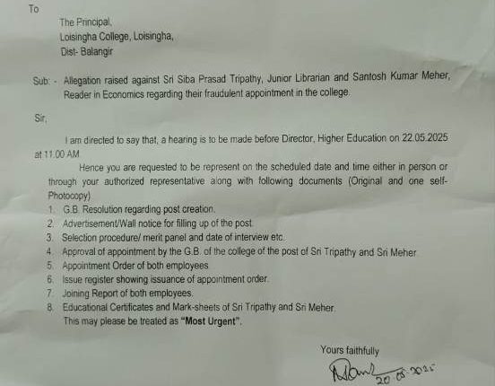 ଲୋଇସିଂହା, (ବିମଳେନ୍ଦୁ ସାହୁ) : ୪୮୮ ଓ ୬୬୨ ବର୍ଗ କଲେଜରେ ଯୋଗ୍ୟ କର୍ମଚାରୀଙ୍କୁ ବ୍ଲକଗ୍ରାଣ୍ଟ ପ୍ରଦାନ କରିବାକୁ ଉଚ୍ଚଶିକ୍ଷା ବିଭାଗ ପକ୍ଷରୁ ପ୍ରକ୍ରିୟା ଆରମ୍ଭ ହୋଇଛି । ଏହି କ୍ରମରେ ଉଚ୍ଚଶିକ୍ଷା ବିଭାଗ ନିର୍ଦ୍ଦେଶକ କାଳୀପ୍ରସନ୍ନ ମହାପାତ୍ର ସମସ୍ତ ବେସରକାରୀ ଅନୁଦାନପ୍ରାପ୍ତ କଲେଜ ଅଧ୍ୟକ୍ଷମାନଙ୍କୁ ଚିଠି କରି ଯୋଗ୍ୟ କର୍ମଚାରୀଙ୍କ ତଥ୍ୟ ଦାଖଲ କରିବାକୁ ନିର୍ଦ୍ଦେଶ ଦେଇଛନ୍ତି । ଉଚ୍ଚଶିକ୍ଷା ବିଭାଗରୁ ଚିଠି ପାଇବା ପରେ ୪୮୮ ବର୍ଗ ଅନ୍ତର୍ଭୁକ୍ତ ଲୋଇସିଂହା କଲେଜ ଅଧ୍ୟକ୍ଷ ଗୋବିନ୍ଦ ଚନ୍ଦ୍ର ସାହୁ ନିଜସ୍ଵ ତ୍ୱାବଧାନରେ ବରିଷ୍ଠ ପ୍ରାଧ୍ୟାପକମାନଙ୍କୁ ନେଇ ଏକ ତଦାରଖ କମିଟି ଗଠନ କରିଥିଲେ । କଲେଜର ସମସ୍ତ କର୍ମଚାରୀଙ୍କ ଦସ୍ତାବିଜ୍ ଯାଞ୍ଚ କରାଯିବା ପରେ ଦୁଇଜଣ କର୍ମଚାରୀଙ୍କ ସର୍ଭିସ୍ ରେକର୍ଡ, ଯୋଗ୍ୟତା ତଥା ନିଯୁକ୍ତି ପ୍ରମାଣପତ୍ରରେ ତାଳମେଳ ନ ଥିବା ଅଧ୍ୟକ୍ଷ ତଥା ତଦାରଖ କମିଟି ହୃଦବୋଧ କରିଥିଲେ । ଏ ନେଇ ଅଧ୍ୟକ୍ଷ ଶ୍ରୀ ସାହୁ ଉଚ୍ଚଶିକ୍ଷା ବିଭାଗକୁ ଗତ ତା :୦୩/୦୫/୨୦୨୫ରେ ସୂଚିତ କରିଥିଲେ । ଲୋଇସିଂହା କଲେଜ ଅଧ୍ୟକ୍ଷଙ୍କ ଠାରୁ ରିପୋର୍ଟ ପାଇବା ପରେ ରାଜ୍ୟ ଉଚ୍ଚଶିକ୍ଷା ବିଭାଗ ତତ୍ପରତା ପ୍ରକାଶ ପୂର୍ବକ ସଂପୃକ୍ତ ଦୁଇଜଣ କର୍ମଚାରୀଙ୍କ ବେଆଇନ ନିଯୁକ୍ତି ବାବଦରେ ଅଧିକ ତଦନ୍ତ କରିବାକୁ କଲେଜ ଅଧ୍ୟକ୍ଷଙ୍କୁ ପୁଣିଥରେ ଚିଠି କରିଥିବା ଜଣାଯାଇଛି । ଉଚ୍ଚଶିକ୍ଷା ବିଭାଗ ସହ ନିର୍ଦ୍ଦେଶକ ମମତା ପଣ୍ଡାଙ୍କ ଚିଠି ନଂ -୨୫୫୬୯ ତା:୨୦/୦୫/୨୦୨୫ ମୁତାବକ, ସଂପୃକ୍ତ ଦୁଇଜଣ କର୍ମଚାରୀଙ୍କ ଚାକିରୀ ସମ୍ବନ୍ଧୀୟ ପ୍ରାୟ ୮ ଗୋଟି ଦସ୍ତାବିଜ୍ ଦାଖଲ କରିବା ପାଇଁ ଚିଠିରେ ଉଲ୍ଲେଖ ରହିଛି । ତଥ୍ୟ ମୁତାବକ, ଲୋଇସିଂହା କଲେଜରେ କାର୍ଯ୍ୟରତ ୭୦ ଜଣ କର୍ମଚାରୀଙ୍କ ମଧ୍ୟରୁ ଅନୁଦାନପ୍ରାପ୍ତ ୨୭ ଜଣ ଏବଂ ମେନେଜମେଣ୍ଟରୁ ଦରମା ପାଉଥିବା ୪୩ ଜଣ କର୍ମଚାରୀ କାର୍ଯ୍ୟରତ ଅଛନ୍ତି । ତନ୍ମଧ୍ୟରୁ ଡ ଶିବପ୍ରସାଦ ତ୍ରିପାଠୀ ଲୋଇସିଂହା କଲେଜରେ ତା:୧୯/୧୦/୧୯୮୪ ରେ କନିଷ୍ଠ ଗ୍ରନ୍ଥାଗାରିକ ଭାବେ ଯୋଗ ଦେଇଥିଲେ । ତେବେ ତାଙ୍କର ନିଯୁକ୍ତି ପ୍ରଦାନ ସମ୍ବନ୍ଧୀୟ କୌଣସି ଦସ୍ତାବିଜ୍ କଲେଜରେ ନ ଥିବା ଜଣାଯାଇଛି । ଶ୍ରୀ ତ୍ରିପାଠୀଙ୍କ ସର୍ଭିସ୍ ବହି ମୁତାବକ, ସେ ତା:୨୦/୧୨/୧୯୮୪ ରେ କଲେଜରେ ନିଯୁକ୍ତି ପାଇଥିଲେ । ଯଦି ସେ ତା:୨୦/୧୨/୧୯୮୪ରେ ନିଯୁକ୍ତି ପାଇଲେ, କିଭଳି ସେ ତାର ଦୁଇମାସ ପୂର୍ବରୁ ଅର୍ଥାତ୍ ତା:୧୯/୧୦/୧୯୮୪ ରେ ଚାକିରୀରେ ଯୋଗଦାନ କଲେ, ତାହା ତଦନ୍ତ ସାପେକ୍ଷ । ଏପରିକି ଚାକିରୀରେ ଯୋଗଦାନର ତିନିମାସ ପରେ ଅର୍ଥାତ୍ ତା:୨୪/୦୧/୧୯୮୫ ରେ ସେ ଇଣ୍ଟରମିଡିଏଟ (ଆଜିର ଯୁକ୍ତ ୨) ପାସ କରିଥିବା ଜଣାଯାଇଛି । ସେହିପରି ଲୋଇସିଂହା କଲେଜର ଆଉ ଜଣେ ବରିଷ୍ଠ ପ୍ରାଧ୍ୟାପକ ମଧ୍ୟ ନକଲି ବିବାଦରେ ଛନ୍ଦି ହୋଇଥିବା ଖବର ମିଳିଛି । ଏ ନେଇ କଲେଜର ଅଧ୍ୟକ୍ଷ ଗୋବିନ୍ଦ ଚନ୍ଦ୍ର ସାହୁଙ୍କୁ ପଚାରିବାରୁ ଉଚ୍ଚଶିକ୍ଷା ବିଭାଗରୁ ଚିଠି ମିଳିବା ସହିତ ତଦନ୍ତ ଜାରି ରହିଥିବା ପ୍ରକାଶ କରିଥିଲେ । ଜାଲ ଦସ୍ତାବିଜ ତଥା ଯୋଗ୍ୟତା ନ ଥାଇ ଚାକିରୀ କରୁଥିବା ଜଣା ପଡ଼ିଲେ ସଂପୃକ୍ତ କର୍ମଚାରୀଙ୍କ ବିରୁଦ୍ଧରେ ଅପରାଧିକ ମାମଲା ରୁଜୁ କରାଯାଇ ବିଭାଗୀୟ ଦୃଢ଼ କାର୍ଯ୍ୟାନୁଷ୍ଠାନ ଗ୍ରହଣ କରାଯିବ ବୋଲି ଉଚ୍ଚଶିକ୍ଷା ବିଭାଗ ପକ୍ଷରୁ ସ୍ପଷ୍ଟ କରାଯିବା ପରେ ଏଭଳି କର୍ମଚାରୀ