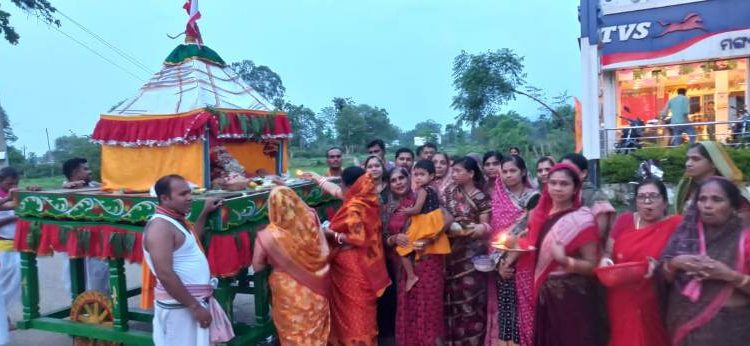 ପଦ୍ମପୁର, (ନିରୋଜ କୁମାର ପାଣୀ) : ନୃସିଂହନାଥ ମନ୍ଦିରରୁ ମହାଲକ୍ଷ୍ମୀ ତାଙ୍କ ରଥରେ ବାହାରି ପାଇକମାଲ ମାଉସୀ ମାଁ ମନ୍ଦିର ନିକଟକୁ ଆସିଥିଲେ । ମାଉସା ମାଁ ଘର ସମୁଖରେ ଥିବା ମହାପ୍ରଭୁ ଜଗନ୍ନାଥଙ୍କ ରଥକୁ ରାଗରେ ଭାଙ୍ଗିଥିଲେ । ସ୍ୱିତିୟା ଦିନ ମହାପ୍ରଭୁ ଜଗନ୍ନାଥ ତାଙ୍କ ବଡଭାଇ, ଭଉଣୀଙ୍କୁ ଧରି ମହାଲକ୍ଷ୍ମୀଙ୍କୁ ଛାଡିଦେଇ ମାଉସୀ ଘରକୁ ଆସିଥିଲେ । ୫ ଦିନ ହେବ ମହାପ୍ରଭୁ ଜଗନ୍ନାଥ ଘରକୁ ନଫେରିବାରୁ ରାଗରେ ମହାଲକ୍ଷ୍ମୀ ମାଉସୀ ଘରକୁ ଯାଇ ରଥ ଭାଙ୍ଗିସାରିବା ପରେ ନିଜ ମନ୍ଦିରକୁ ଫେରି ଆସିଥିଲେ । ଏହି କାର୍ଯ୍ୟକ୍ରମରେ ନୃସିଂହନାଥ ବ୍ରହ୍ମଣ ସମାଜର କର୍ମକର୍ତ୍ତା ସୁନିଲ ପୁରୋହିତ, ଆକାଶ ପାଣିଗ୍ରାହୀ, ମାତୃପ୍ରସାଦ ରଥ, ପ୍ରିତେଶ ବଡପଣ୍ତା ତଥା ନୃସିଂହନାଥ ମନ୍ଦିର ପୂଜକମାନେ ସହଯୋଗ କରିଥିଲେ । ଫେରିବା ସମୟରେ ପାଇକମାଲ, ନରସିଂହପଡା, ଜର୍ଜଗଡ, ଦଣ୍ତପାଟ, ଦୁର୍ଗାପାଲି ମାଁ ଭଉଣୀମାନେ ଏକତ୍ରିତ ହୋଇ ନିଜ ନିଜ ଘର ସମ୍ମୁଖରେ ମା’ ଲକ୍ଷ୍ମୀଙ୍କୁ ପୂଜା ଅର୍ଚ୍ଚନା କରିଥିଲେ ।