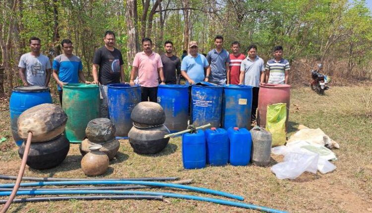 ଟିଟିଲାଗଡ, (ସଞ୍ଜୟ କୁମାର ନାୟକ) : ଟିଟିଲାଗଡ ଥାନାଧିକାରୀ ଅବନୀ ସାହୁ ବିଶ୍ଵସ୍ତ ସୂତ୍ରରୁ ଖବର ପାଇ ପାହାନ୍ତିଆରୁ ଡୁମେରବାହଲ ନିକଟ କୁଟୁରାକେନ୍ ଗ୍ରାମଠାରେ ଦେଶୀ ରନ୍ଧାମଦ ପ୍ରସ୍ତୁତ ହେଉଥିବା ଖବର ପାଇ ପାହାନ୍ତିଆରୁ ସେହି ସ୍ଥାନକୁ ପୋଲିସ ସଦଳବଳ ପହଞ୍ଚି ପାଣି ଥିବା ଜୋର ଭିତରେ ପଶି ଡ୍ରମ୍ମାନଙ୍କ ଭିତରେ ରଖାଯାଇଥିବା ମଦ ଜବତ କରିଛି । ପୋଲିସକୁ ଦେଖି ମଦ ପ୍ରସ୍ତୁତ କରୁଥିବା ଲୋକେ ଫେରାର ମାରିଥିଲେ । ଜଙ୍ଗଲ ଭିତରେ ଖୋଜାଖୋଜି କରିବା ପରେ ବି ସେମାନଙ୍କୁ ନପାଇ ମଦ ଡ୍ରମ୍, ବ୍ୟାରେଲ, ୧୪୦୦ ଲିଟର ମଦ ଜବତ କରିବା ସହ ତାକୁ ଧରି ଟିଟିଲାଗଡ ଥାନାକୁ ଆଣିଥିବା ଏସ୍ଡିପିଓ ଶ୍ରୀମତୀ ଅଙ୍କିତା କୁମ୍ଭାର ସାମ୍ୱାଦିକ ସମ୍ମିଳନୀରେ ସୂଚନା ଦେଇଛନ୍ତି । ତେବେ ନିର୍ବାଚନ ପାଇଁ ଏତେ ଅଧିକ ପରିମାଣରେ ମଦ ପ୍ରସ୍ତୁତ କରାଯାଉଥିବା ଜଣାପଡିଛି । ଏହି ଚଢ଼ାଉରେ ଥାନାଧିକାରୀ ଅବନୀ ସାହୁ, ଏଏସ୍ଆଇ ସୁବାସ ଚନ୍ଦ୍ର ସାହୁ, କାର୍ତ୍ତିକ ପ୍ରଧାନ, ପିଏସ୍ଆଇ ଆଶିଷ କୁମାର ବିଶ୍ୱାଳ, କନଷ୍ଟେବଳ୍ ଆକାଶ ବେହେରା, ଗୌରାଙ୍ଗ ଶବର ଓପିଏଫ୍ ଭାଗିରଥି ବାଲା, ରାୱା ମୂତା, ନରେଶ କହଁର, ଟିକୁ କିର୍ଷାନି ସାମିଲ ଥିଲେ ।