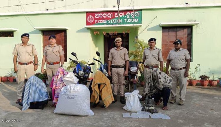 ତୁଷୁରା : ତୁଷୁରା ଅବକାରୀ ବିଭାଗ ପକ୍ଷରୁ ୪୮ ଲିଟର ଦେଶୀ ମଦ ଓ ୩୨ କେଜି ୩୮୦ ଗ୍ରାମ ଗଞ୍ଜେଇ ସହ ତିନୋଟି ବାଇକ ଜବତ । ଚାରିଜଣଙ୍କୁ ଗିରଫ କରି କୋର୍ଟ ଚାଲାଣ କରାଯାଇଥିବା ତୁଷୁରା ଅବକାରୀ ଅଧିକାରୀ ଶ୍ରୀକାନ୍ତ ପାଣିଗ୍ରାହୀ ସୂଚନା ପ୍ରଦାନ କରିଛନ୍ତି । ପେଟ୍ରୋଲିଙ୍ଗ ସମୟରେ ଡୁଙ୍ଗିବାହାଳ ଛକଠାରେ ଏକ ବାଇକରେ ତୁଷୁରା ଥାନା ଅନ୍ତର୍ଗତ ଡୁଙ୍ଗିବାହାଳ ଗ୍ରାମର ସୂର୍ଯ୍ୟମଣି ରଣା (୩୭) ଆସୁଥିବା ବେଳେ ସନ୍ଦେହ କରି ତାଙ୍କୁ ଅବକାରୀ ବିଭାଗର ଅଧିକାରୀମାନେ ଅଟକାଇ ଥିଲେ । ଯାଞ୍ଚ ପରେ ୪୮ ଲିଟର ଦେଶୀ ମଦ ବାହାରିଥିଲା । ବଡବାହାଲ ଛକ ପାଖରେ ଦୁଇଟି ବାଇକରେ ତିନି ଜଣ ଯୁବକ ଏକ ଜରି ପେକେଟ ଅଦଳବଦଳ କରୁଥିବା ବେଳେ ଅବକାରୀ ବିଭାଗ ପକ୍ଷରୁ ସନ୍ଦେହ କରି ଯାଞ୍ଚ କରାଯାଇଥିଲା । ଉକ୍ତ ଯୁବକଙ୍କଠାରୁ ୩୨ କେଜି ୩୮୦ଗ୍ରାମ ଗଞ୍ଜେଇ ଜବତ କରି କୋର୍ଟ ଚାଲାଣ କରିଥିଲା ଅବକାରୀ ବିଭାଗ । ଉକ୍ତ ଯୁବକମାନେ ଗୌରଗୋଠ ଗ୍ରାମର ବ୍ରଜରାଜ କୁମ୍ଭାର (୨୯), ଓମପ୍ରକାଶ ରଣା (୩୬) ଓ ତରଭା ଥାନା ଅନ୍ତର୍ଗତ କମସରା ଗ୍ରାମର ରାଜୀବ ବେହେରା (୩୫) ବୋଲି ଜଣା ପଡିଛି । ଏହି ପେଟ୍ରୋଲିଙ୍ଗରେ ବିଭାଗର ଡୁଲେଶ୍ୱର କୁମ୍ଭାର, ମଧୁସୂଦନ ସେଠ, ବିଭୂତି ଭୋଇ, ଭୋଜରାଜ ବଢେଇ ପ୍ରମୁଖ ସାମିଲ ଥିଲେ ।