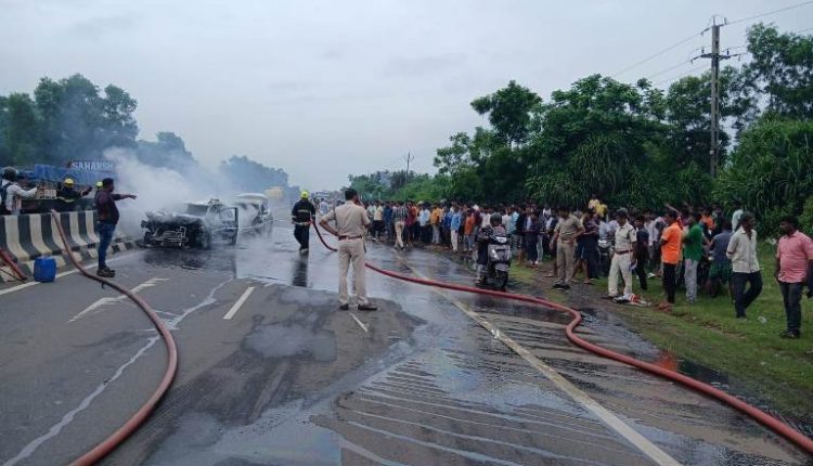 ବ୍ରହ୍ମପୁର, (କେ.ସତ୍ୟନାରାୟଣ ରେଡ୍ଡୀ) : ଘଟଣାଟି ଘଟିଛି ଗଞ୍ଜାମ ଜିଲ୍ଲାର ଛତ୍ରପୁର ନିକଟସ୍ଥ ଚମାଖଣ୍ଡି ଥାନା ଅନ୍ତର୍ଗତ ଚମାଖଣ୍ଡି ଛକରେ ଛତ୍ରପୁରରୁ ବ୍ରହ୍ମପୁର ଅଭିମୁଖେ ଯାଉଥିବା ବେଳେ ଗୋଟିଏ କାରକୁ ପଛପଟୁ ଆଉ ଗୋଟିଏ କାର ଧକ୍କା ଦେଇଥିଲା । ଦୁଇଟି କାର ଦୁର୍ଘଟଣା ହେବା ପରେ କାରରେ ବସିଥିବା ଲୋକେ ବାହାରକୁ ବାହାରି ଯାଇଥିଲେ । ଦୁର୍ଘଟଣାର କିଛି ସମୟ ପରେ ଦୁଇଟି କାର ହୁତୁ ହୁତୁ ହୋଇ ଜଳି ଯାଇଥିଲା । କାର ଦୁର୍ଘଟଣା ଓ ନିଆଁ ଲାଗିବା ଘଟଣାରେ କେହି ମୃତାହତ ହୋଇନାହାନ୍ତି । ଛତ୍ରପୁର ଅଗ୍ନିଶମ ବିଭାଗର ଦୁଇଟି ଗାଡ଼ି ସହ ୧୦ରୁ ଅଧିକ କର୍ମଚାରୀ ପହଞ୍ଚି କାରରେ ଲାଗିଥିବା ନିଆଁକୁ ଆୟତ୍ତ କରିଥିଲା । ଘଟଣାସ୍ଥଳରେ ଚମାଖଣ୍ଡି ଥାନା ପୋଲିସ ପହଞ୍ଚି ତଦନ୍ତ ଆରମ୍ଭ କରିଛନ୍ତି, ଏପଟେ ଛତ୍ରପୁର ବିଧାୟକ କୃଷ୍ଣଚନ୍ଦ୍ର ନାୟକ ମଧ୍ୟ ଘଟଣା ସ୍ଥଳରେ ପହଞ୍ଚି ସ୍ଥିତି ଅନୁଧ୍ୟାନ କରିଛନ୍ତି ।