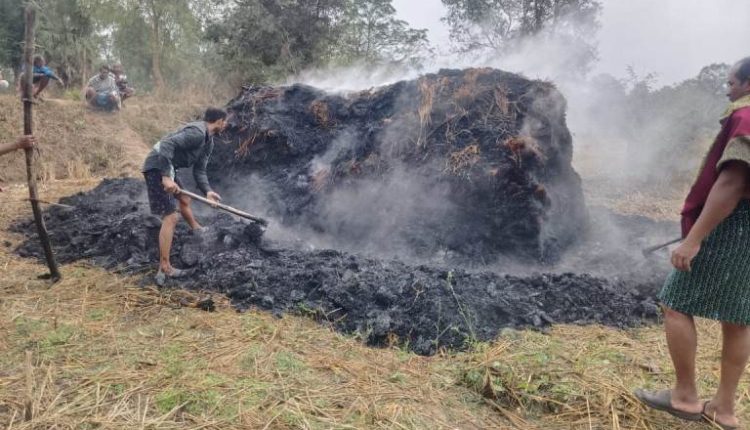ପୁଇଁତଲା : ଜଳିଗଲା ଧାନ ଗଦା । ବଲାଙ୍ଗିର ଜିଲ୍ଲା ପୁଇଁତଲା ବ୍ଲକ ଦୁର୍ଗାପାଲି ଗାଁରେ ଏଭଳି ଏକ ଅଭନୀୟ ଘଟଣା ଦେଖିବାକୁ ମିଳିଛି । ଦୁର୍ଗାପାଲି ଗାଁ ନଳୀନ ପଟେଲଙ୍କର ଚାଷ ଜମିରେ ଧାନ କାଟି ରଖା ଯାଇଇଥିବା ବେଳେ ସେଥିରେ ନିଆଁଲାଗି ଧାନ ଜଳିଯାଇଛି । ୪ ଏକର ଜମିରେ ଚାଷ କରିଥିବା ଧାନ ଜଳିଯାଇଥିବା ସୂଚନା ରହିଛି । ଯାହାକି ହାରାହାରି ୩୦୦ ବସ୍ତା ଧାନ କ୍ଷତି ହୋଇଥିବା ମିଳିଛି ସୂଚନା ।