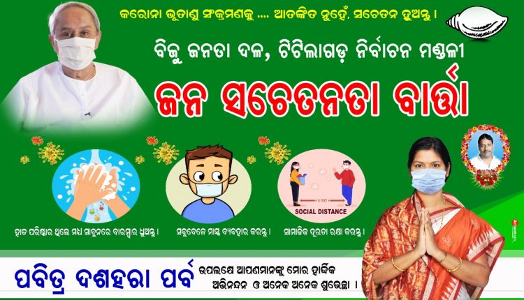 ଟିଟିଲାଗଡ, (ଗୌରବ ଦର୍ଜୀ) : ଓଡ଼ିଶାରେ କରୋନା ବୃଦ୍ଧିକୁ ଆଖି ଆଗରେ ରଖି ଓଡ଼ିଶା ସରକାର ଜନ ସଚେତନତା କାର୍ୟ୍ୟକ୍ରମ ଆରମ୍ଭ କରିଛନ୍ତି । ଓଡ଼ିଶାର ବିଭିନ୍ନ ସ୍ଥାନରେ ଏହି କାର୍ୟ୍ୟକ୍ରମ ଆରମ୍ଭ ହୋଇ ସାରିଥିବ ବେଳେ ଗତକାଲି ୨୨ ଅକ୍ଟୋବର ସକାଳ ୧୦:୩୦ ସମୟରେ ଟିଟିଲାଗଡର ବିଜୁ ଜନତା ଦଳ କାର୍ୟ୍ୟାଳୟ ଠାରେ ମାନ୍ୟବର ମହିଳା ଓ ଶିଶୁ ବିକାଶ ଏବଂ ମିଶନ ଶକ୍ତି ମନ୍ତ୍ରୀ ଶ୍ରୀମତୀ ଟୁକୁନି ସାହୁ ସବୁଜ ପତାକା ଦେଖାଇ ଶୁଭାରମ୍ଭ କରିଥିଲେ । କରୋନା ଭୁତାଣୁର ସଂକ୍ରମଣ ବିଷୟରେ ସଚେତନ କରିବାକୁ ଏକ ଜନ ସଚେତନ ରଥକୁ ସବୁଜ ପତକା ଦେଖେଇ ଶୁଭାରମ୍ଭ କରିଥିଲେ । ଟିଟିଲାଗଡ ବିଜୁ ଜନତା ଦଳର ନେତୃବୃନ୍ଦ ଉପସ୍ଥିତ ରହିଥିଲେ । ଏହି ରଥ ଟିଟିଲାଗଡ ସହର ସମେତ ଗାଁ ଗାଁ ବୁଲି ଲୋକଙ୍କୁ ସଚେତନତାର ବାର୍ତ୍ତା ପ୍ରଦାନ କରିବା ସହ ମାସ୍କ ବଣ୍ଟନ କରିବା, ସାମାଜିକ ଦୂରତା ରକ୍ଷା କରିବା, ମାସ୍କ ବ୍ୟବହାର କରିବା, ସାନିଟାଇଜର ବ୍ୟବହାର କରିବା ଆଦି ବାର୍ତ୍ତା ପ୍ରଦାନ କରିବ । ପିପଲପଦର, ଶିକେର, ଶଗଡଘାଟ ଗ୍ରାମ ବୁଲି ମନ୍ତ୍ରୀ ଶ୍ରୀମତୀ ସାହୁ ଟିଟିଲାଗଡ ବ୍ଳକ ଅଧକ୍ଷା ଶ୍ରୀମତୀ ରାମାକାନ୍ତି ପୁଟେଲ, ପୂର୍ବତନ ବ୍ଳକ ଅଧକ୍ଷା ଶ୍ରୀମତୀ ଗୀତା ବିଶି, ସମିତି ସଭ୍ୟ ଶ୍ରୀମତୀ ବବିତା ସାହୁ ଏବଂ ପଞ୍ଚାୟତର ବିଜୁ ଜନତା ଦଳ ନେତୃ ବୃନ୍ଦ ଉପସ୍ଥିତ ରହି ସଚେତନତା ସୃଷ୍ଟି କରିବା ସହ ମାସ୍କ ଓ ଲିଫଲେଟ ବଣ୍ଟନ କରିଥିଲେ । ଏହି ସଚେତନତା ରଥ ଟିଟିଲାଗଡ, ସଇଁତଳା ଓ ଗୁଡଭେଲା ବ୍ଳକ ଆଦି ଅଞ୍ଚଳରେ ବୁଲି ସଚେତନତା କାର୍ୟ୍ୟକ୍ରମ କରାଯିବ ବୋଲି କୁହାଯାଇଛି ।