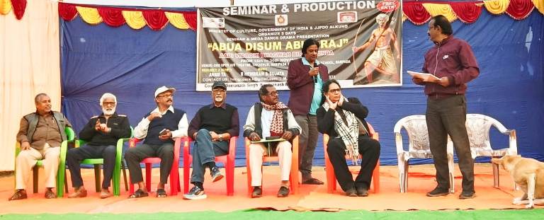 ବାରିପଦା, (ଦେବସ୍ମିତ ଚୌଧୁରୀ) : ଭାରତ ସରକାରଙ୍କ ସଂସ୍କୃତି ବିଭାଗ ଆନୁକୂଲ୍ୟରେ ଓ ସ୍ୱୀକୃତି ପ୍ରାପ୍ତ ଅନୁଷ୍ଠାନ ଜେ ଜେ ପି ଡି ଓର ସହଯୋଗରେ ସ୍ୱାଧୀନତା ସଂଗ୍ରାମୀ ବିର୍ସା ମୁଣ୍ଡାଙ୍କ ୧୫୦ତମ ଜନ୍ମ ଜୟନ୍ତୀ ପାଳିତ ହୋଇଯାଇଛି । ଏହି ଅବସରରେ ନଭେମ୍ବର ୧୪ ଓ ୧୫ ତାରିଖ ଦିନ ସ୍ଥାନୀୟ ମହାରାଜପୁର ସ୍ଥିତ ଓ ଆର ଡି ଓପେନ ଏଆର ଥିଏଟର ପରିସରରେ ବିର୍ସା ମୁଣ୍ଡାଙ୍କ ଜୀବନ କାହାଣୀ ଉପରେ ଆଧାରିତ ନାଟକ “ଆବୁଆ ଦିଶମ ଆବୁଆ ରାଜ” ମଞ୍ଚସ୍ଥ ହୋଇଥିଲା । ଅନମ ଶେଖ ଓ ସୋମନାଥ ସିଂହଙ୍କ ରଚିତ ତଥା ଶେଖ ଖଇରୁଦ୍ଦିନଙ୍କ ନିର୍ଦ୍ଦେଶିତ ନାଟକରେ ଦିଲ୍ଲୀରୁ ଆସିଥିବା କଳାକାର ଅନୁପ ରଞ୍ଜନ, ଡଃ ଏସ କେ ସିଂହ, ରମେଶ ବୋରା, ନେନସୀ ମୁଣ୍ଡା, ତ୍ରିଲୋଚନ ଝା, ଅନମ ଶେଖଙ୍କ ସମେତ ବାରିପଦାର ରମେଶ ହେମ୍ବ୍ରମ, ଆଲୋକ ବାରିକ, ରାଜେଶ ଦାଶ ପ୍ରମୁଖ ଅଭିନୟ କରିଥିଲେ । କଳାକାର ମାନଙ୍କ ଜୀବନ୍ତ ଅଭିନୟ ସ୍ଥାନୀୟ ଦର୍ଶକଙ୍କ ଦ୍ୱାରା ବେଶ ପ୍ରଶଂସିତ ହୋଇଥିଲା । ନଭେମ୍ବର ୩୦ ତାରିଖ ଦିନ ପୂର୍ଣ୍ଣଚନ୍ଦ୍ର ପୁର ସରକାରୀ ଉଚ୍ଚ ପ୍ରାଥମିକ ବିଦ୍ୟାଳୟ ପରିସରରେ ଜନ୍ମ ଜୟନ୍ତୀର ସମାପନ ଦିବସରେ ଓ ଆର ଡି ଓ ପି ସି ପୁରର ଛାତ୍ରଛାତ୍ରୀ ମାନଙ୍କ ଦ୍ୱାରା ଆଦିବାସୀ ନୃତ୍ୟ ପରିବେଷଣ କରାଯାଇଥିଲା । ଏହି ଅବସରରେ ସୋମନାଥ ସିଂହଙ୍କ ପୌରହିତ୍ୟରେ ବିର୍ସା ମୁଣ୍ଡାଙ୍କ ଜୀବନ କାହାଣୀ ଉପରେ ଏକ ସେମିନାର ଅନୁଷ୍ଠିତ ହୋଇଥିଲା । ଏହି ସେମିନାରରେ ଶେଖ ଖଇରୁଦ୍ଦିନଙ୍କ ସମେତ ବାରିପଦା କଳାକାର ପରିବାରର ସଭାପତି ସନ୍ତୋଷ ମହାନ୍ତି, ସମ୍ପାଦକ ଜ୍ଞାନ ରଞ୍ଜନ ପଣ୍ଡା, ବରିଷ୍ଠ ଅଭିନେତା ନିର୍ଦ୍ଦେଶକ କ୍ଷୀରୋଦ ବିହାରୀ ସିଟ, ପ୍ରକାଶ ଦାଶ, ଆଶିଷ କୁମାର ବସା, ତ୍ରିଲୋଚନ ସାହୁ ତଥା ଅଭିନେତା ପ୍ରସନ୍ନ କୁମାର ମହାନ୍ତି, କୁନ୍ଦନ ଭଞ୍ଜ ପ୍ରମୁଖ ଆଲୋଚନାରେ ସକ୍ରିୟ ଅଂଶଗ୍ରହଣ କରିଥିଲେ ।